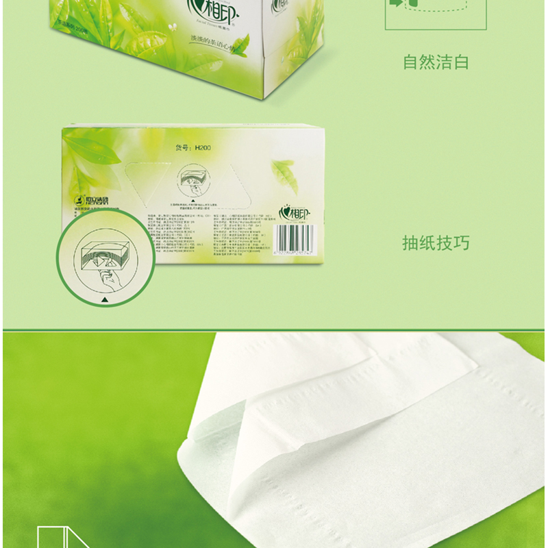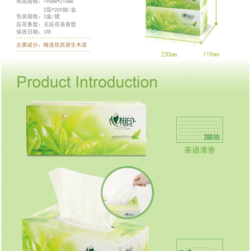心相?。∕ind Act Upon Mind) H200 茶語(yǔ)系列盒裝抽紙面巾紙餐巾紙200抽*2層*3盒