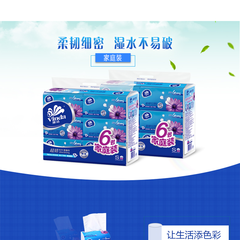 維達(dá)(Vinda) V2239 3層自然無(wú)香袋裝抽紙面巾紙餐巾紙130抽 x 6包