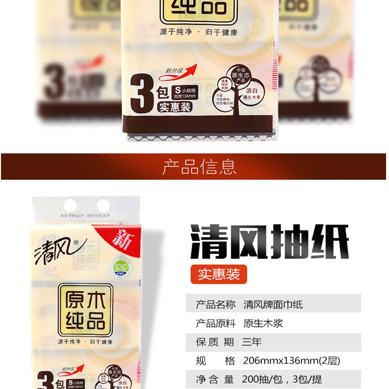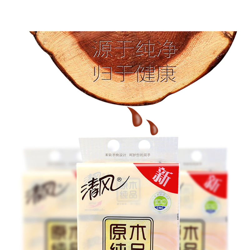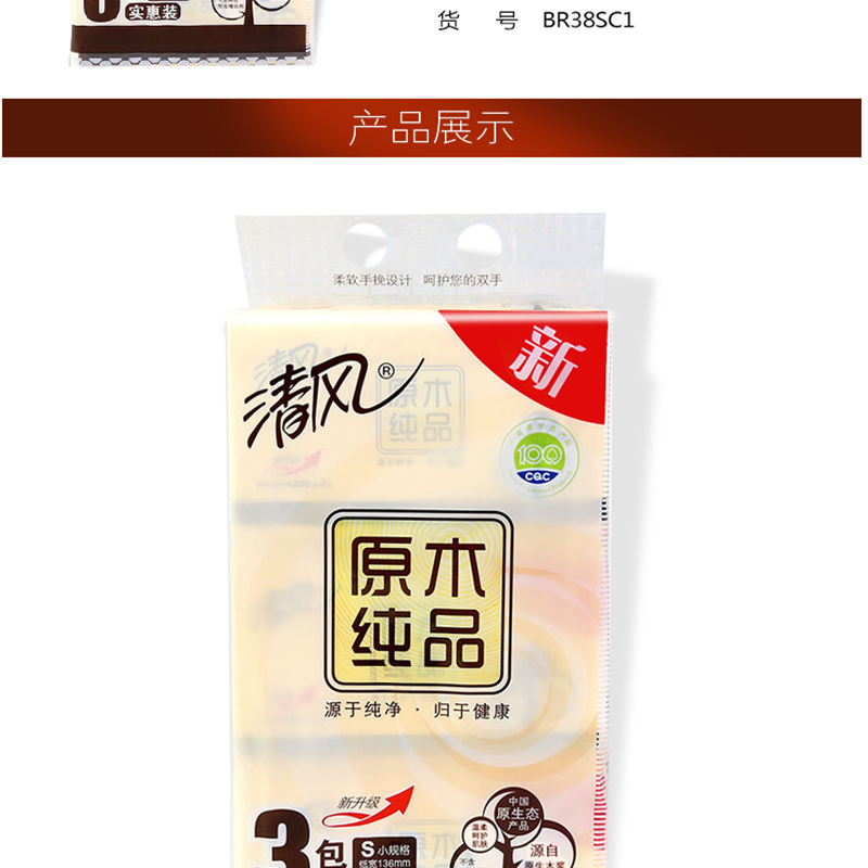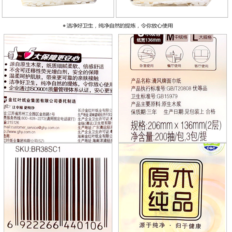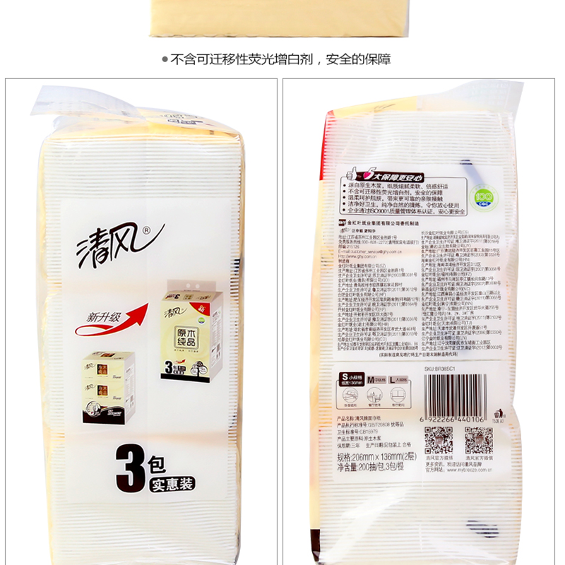 清風(fēng)(APP) BR38SC1 原木純品軟裝抽紙面巾紙餐巾紙 經(jīng)濟(jì)裝2層200抽*3包