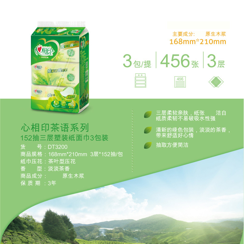 心相?。∕ind Act Upon Mind) DT3200 茶語系列三層軟抽紙面巾紙餐廳紙152抽*3包