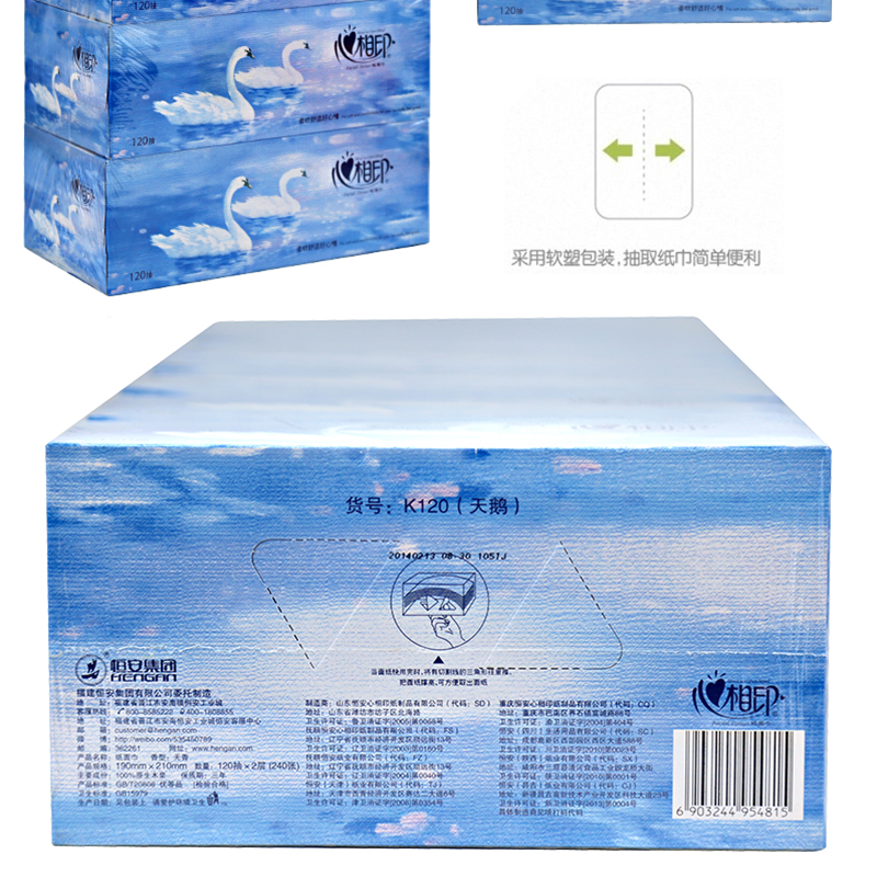 心相印(Mind Act Upon Mind) K120 天鵝系列盒裝抽紙面巾紙餐巾紙2層*120抽*6盒