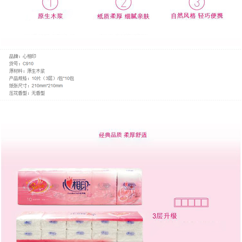 心相?。∕ind Act Upon Mind) C910 無香面巾紙餐巾紙手帕紙10包/條