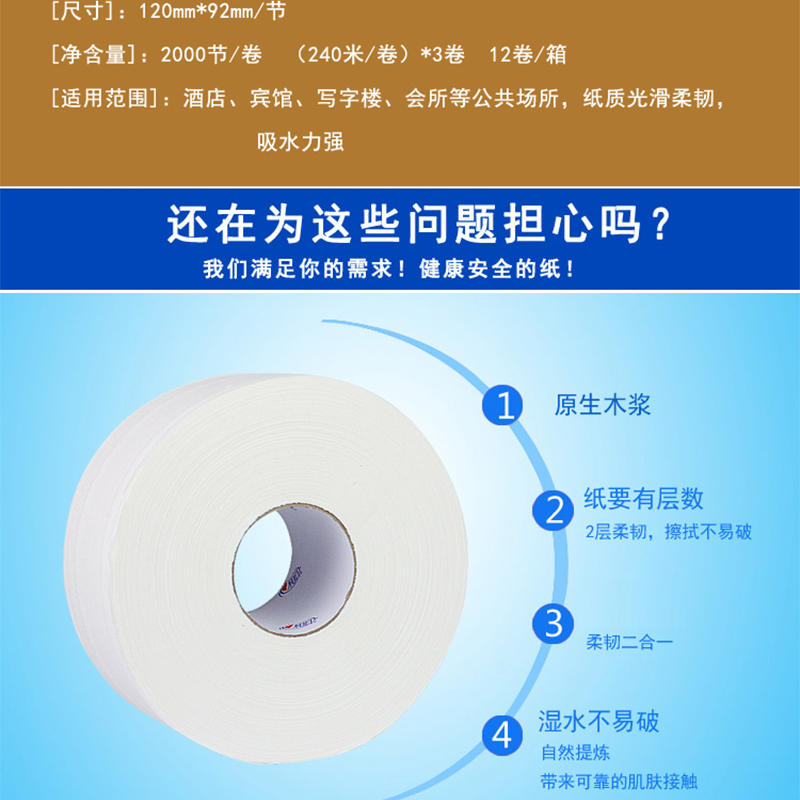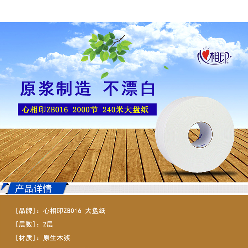 心相印(Mind Act Upon Mind) ZB016 商用大盤紙 衛(wèi)生紙 大卷紙 240米公用雙層廁紙 12卷/箱
