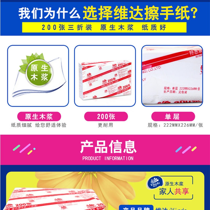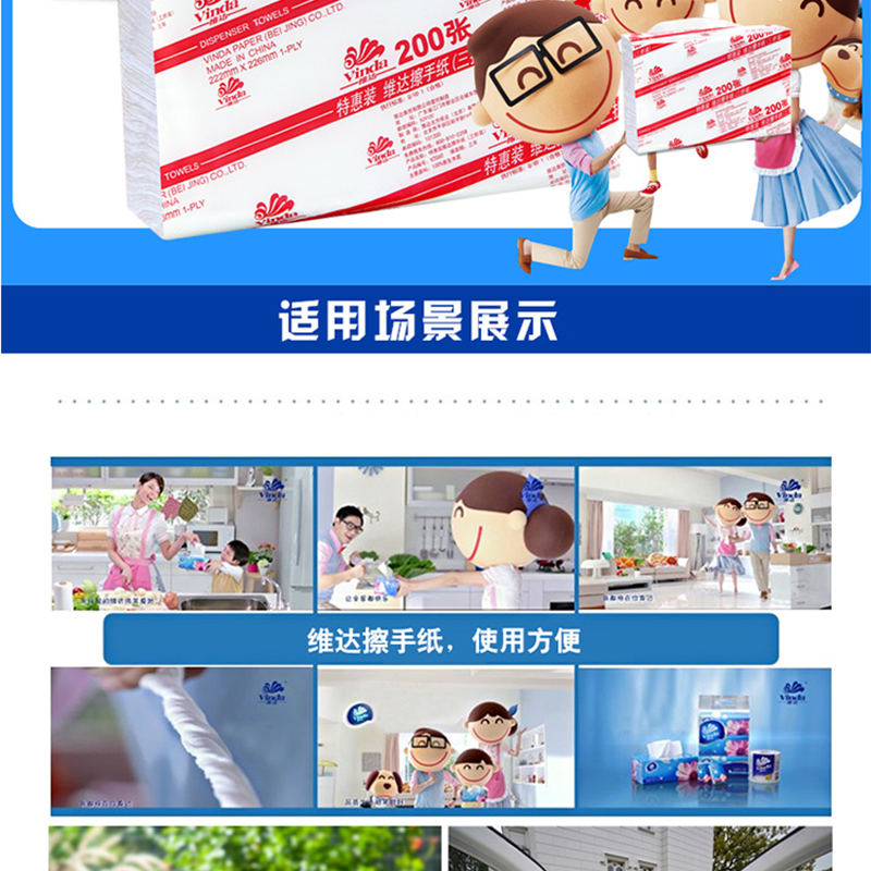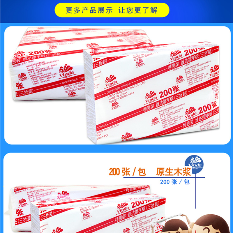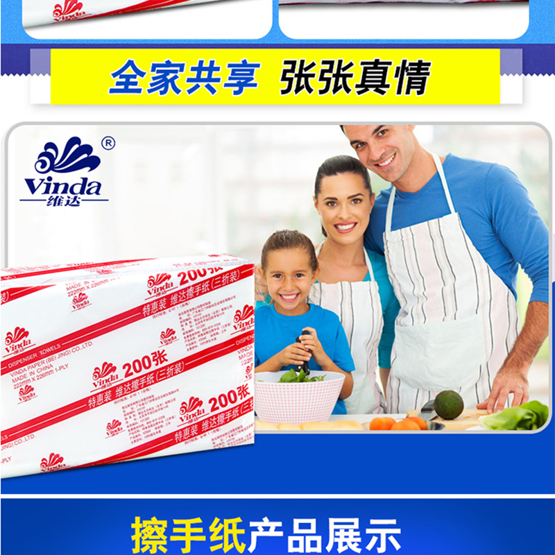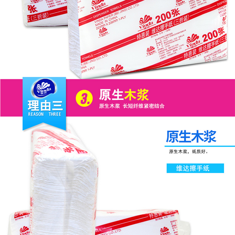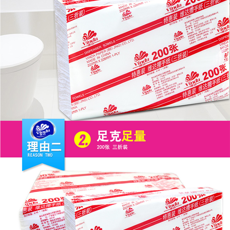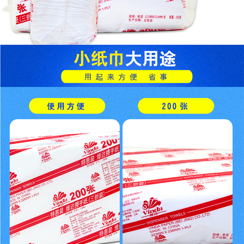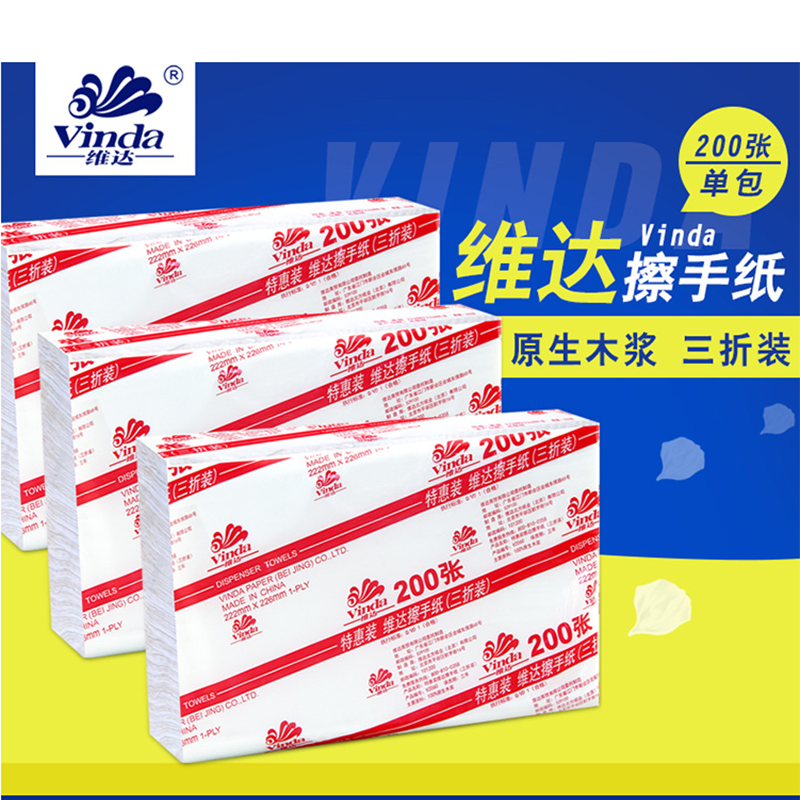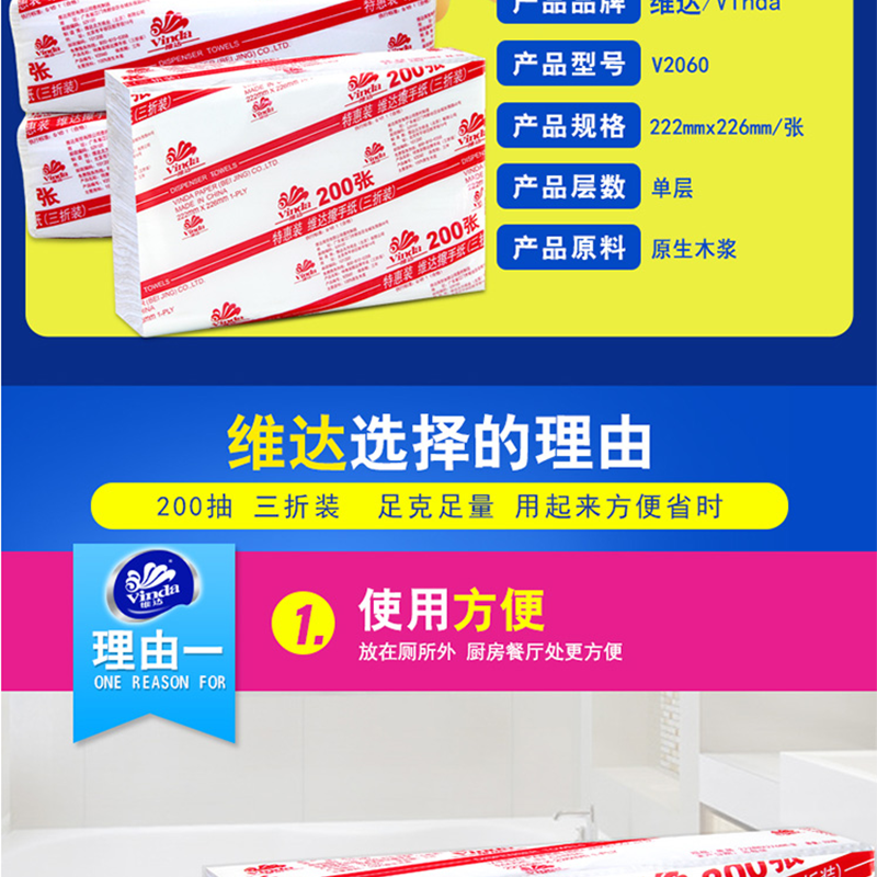 維達(Vinda) V2060 商用商務酒店公共場合用三折紙擦手紙200抽/包