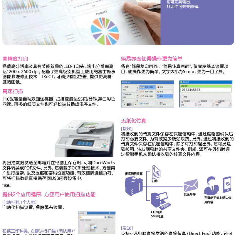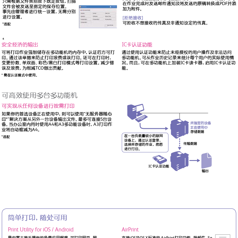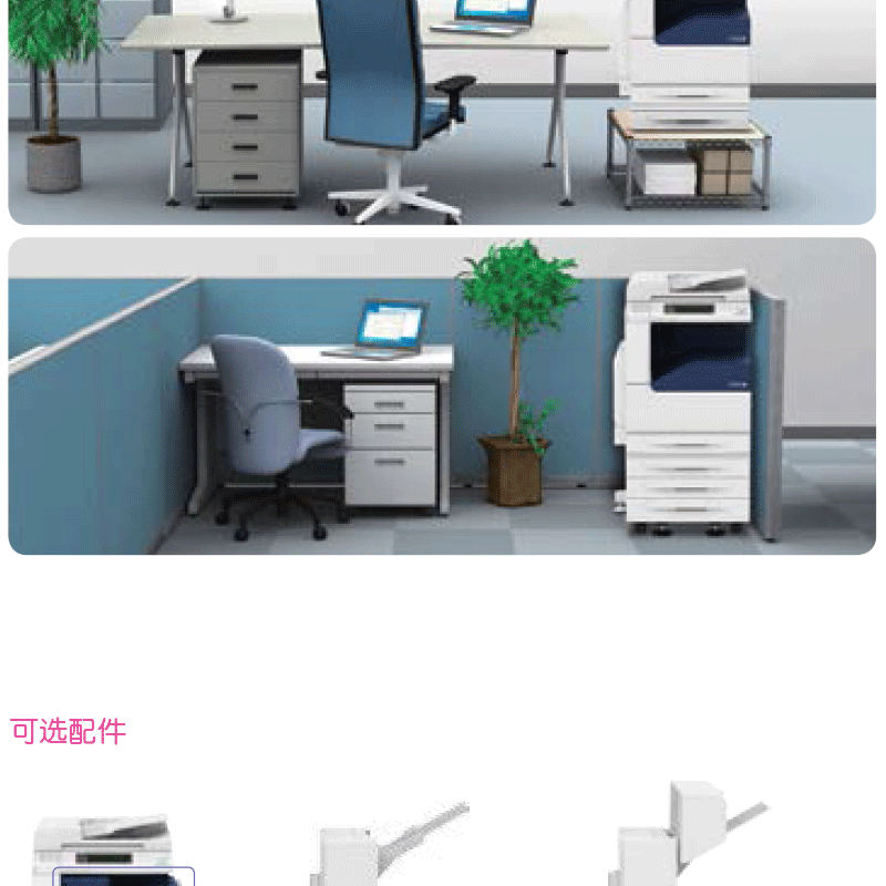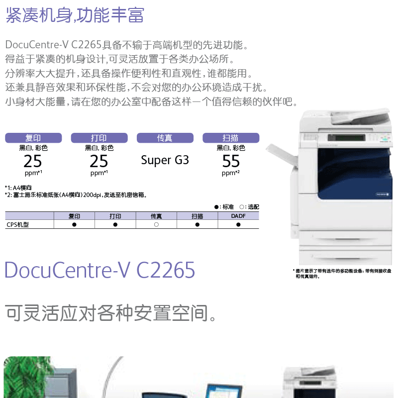 標配:雙紙盒、雙面輸稿器。復印打印速度:25頁/分鐘(黑彩同速)。 ?
