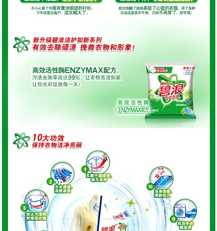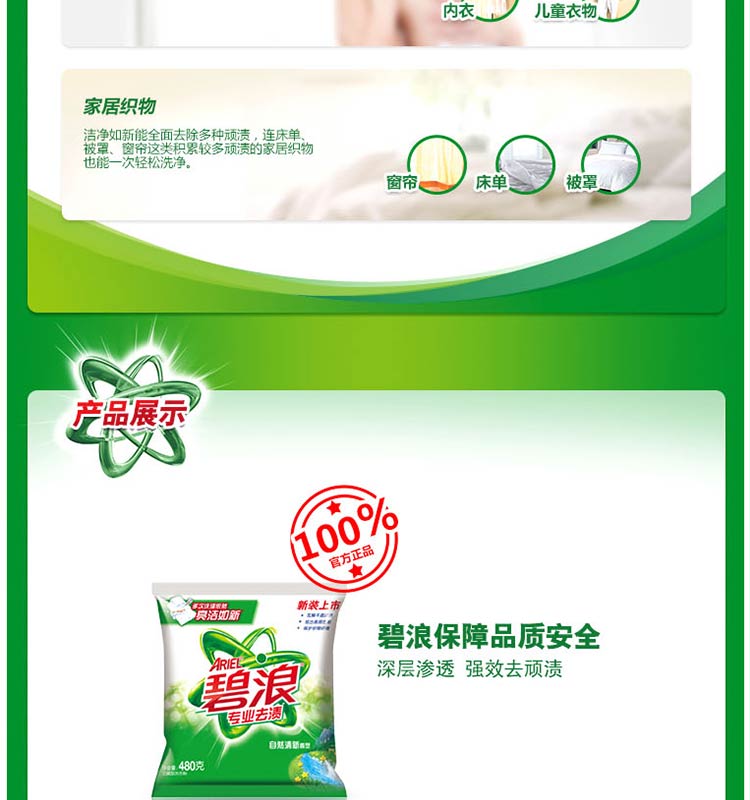 碧浪 專業(yè)去漬無磷自然清新型洗衣粉480g
