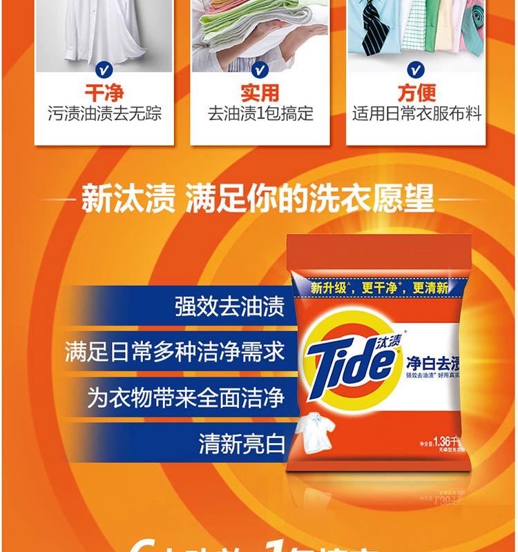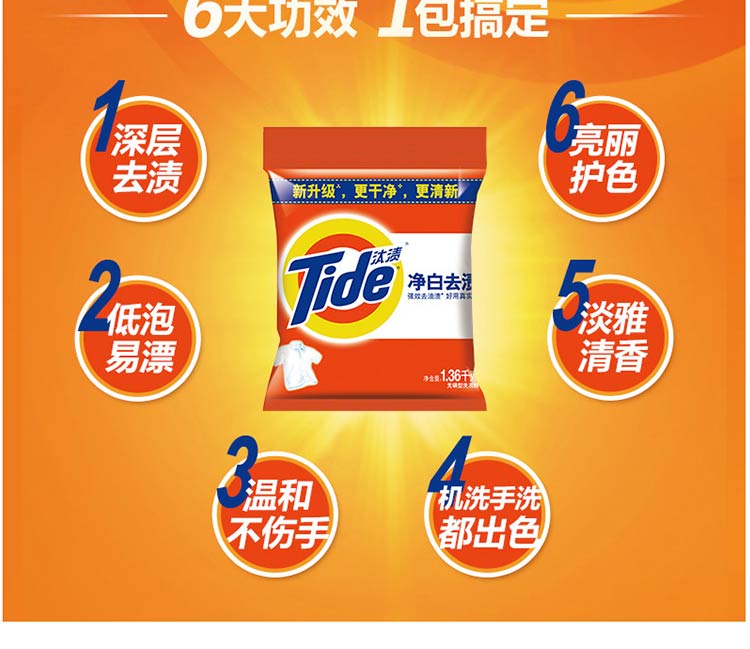 汰漬(TIDE) 凈白去漬 無磷洗衣粉 1.36kg