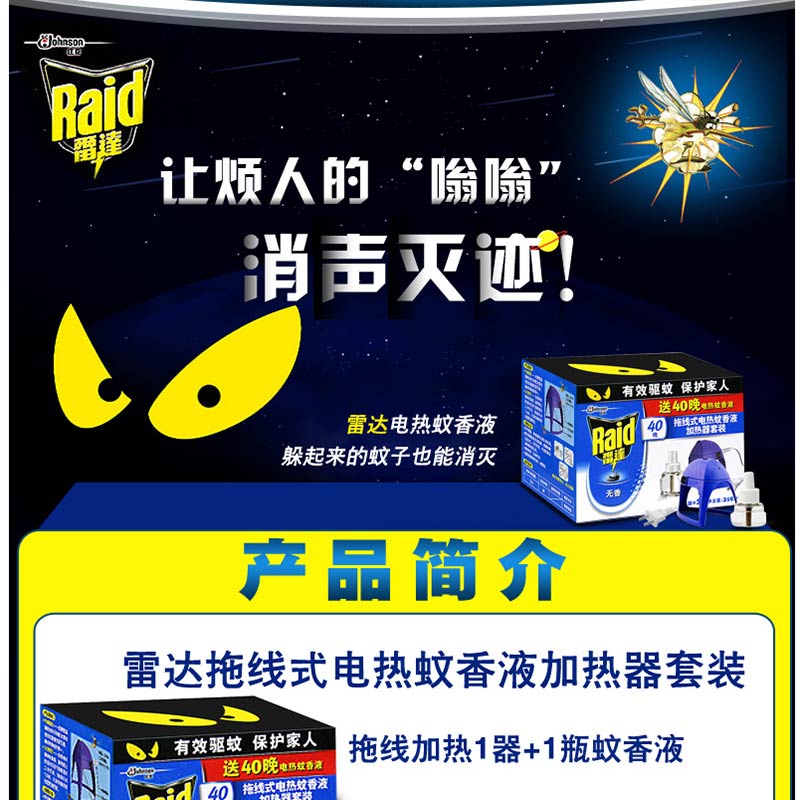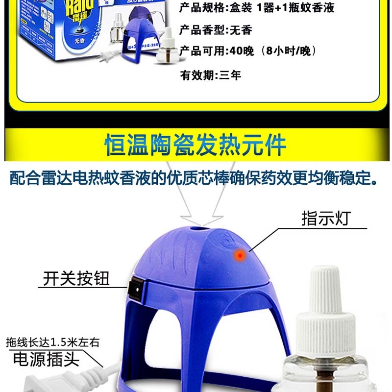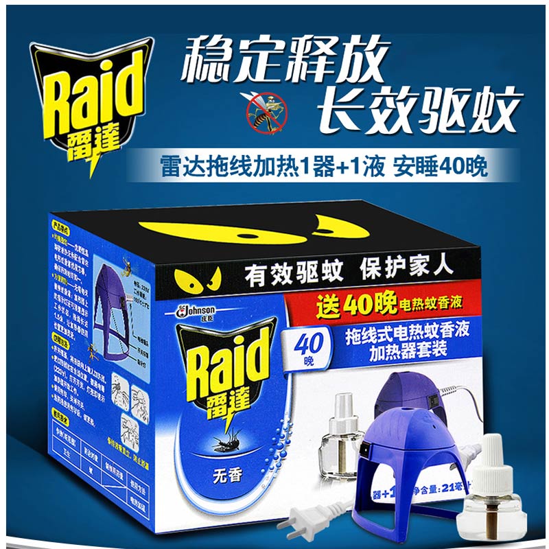 雷達(Raid) 拖線式電熱蚊香液加熱器+40晚無香驅(qū)蚊液