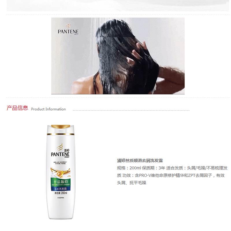 潘婷(pantene) 洗發(fā)水洗發(fā)露 絲質(zhì)順滑型200ml