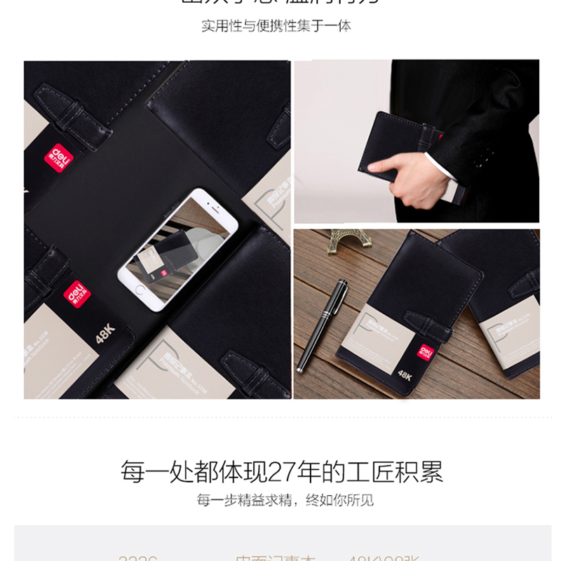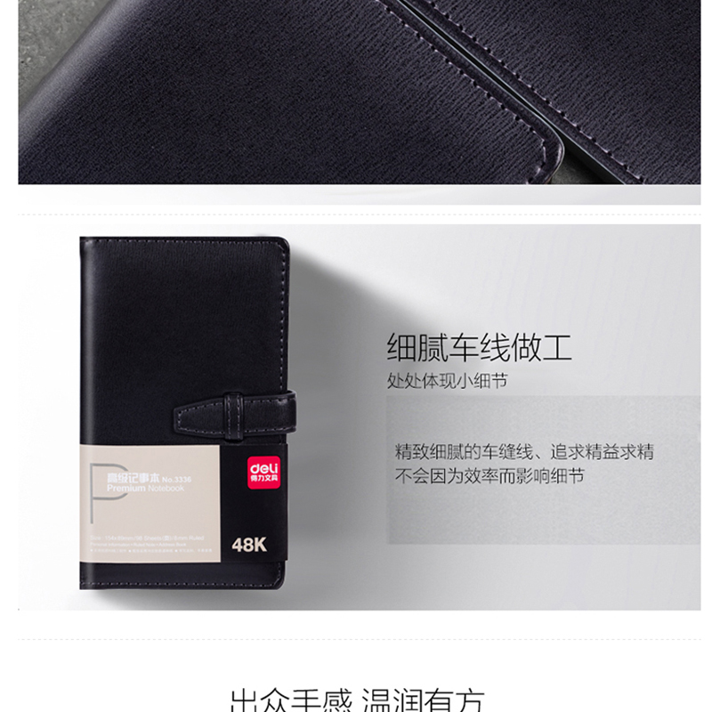 得力(deli) 3336 簡約扣帶皮面本/記事本 48K/98頁 黑色