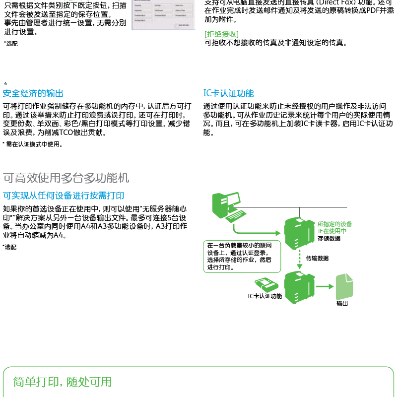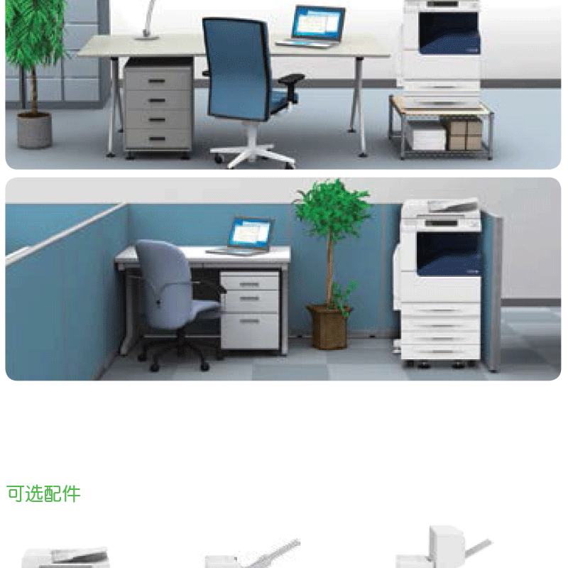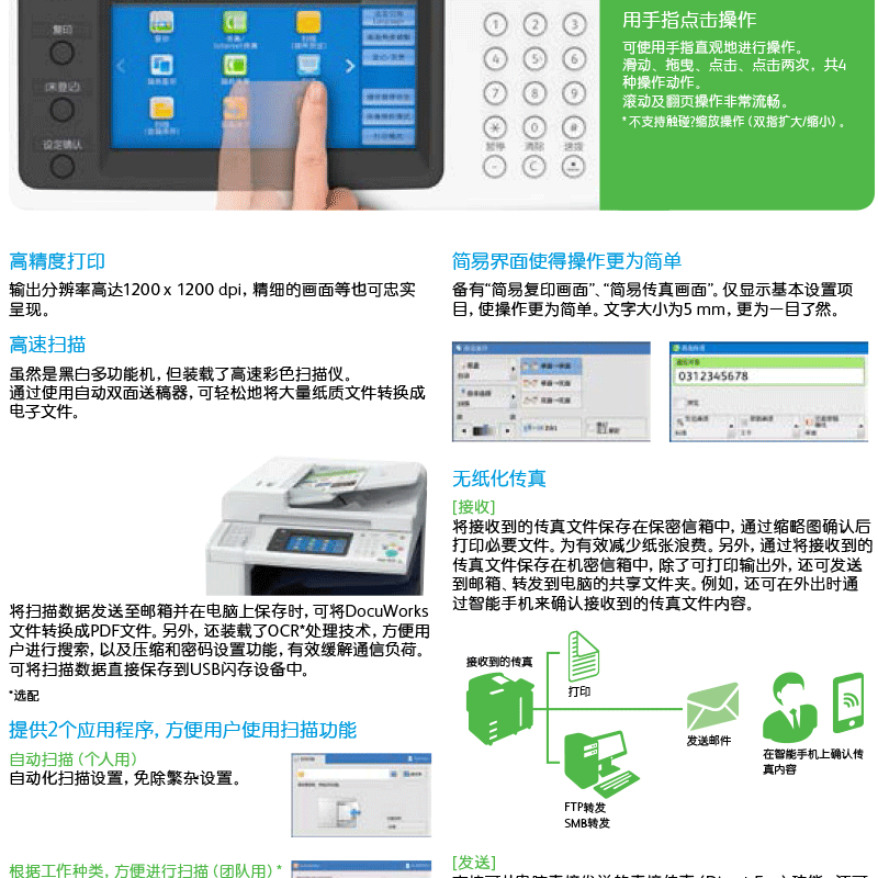 標(biāo)配:雙紙盒、雙面輸稿器。復(fù)印打印速度:30頁/分鐘!支持無線功能(選配). ?