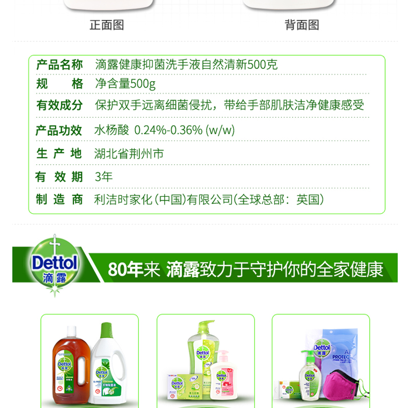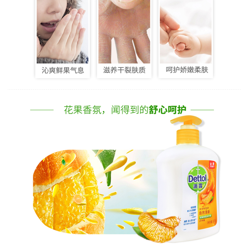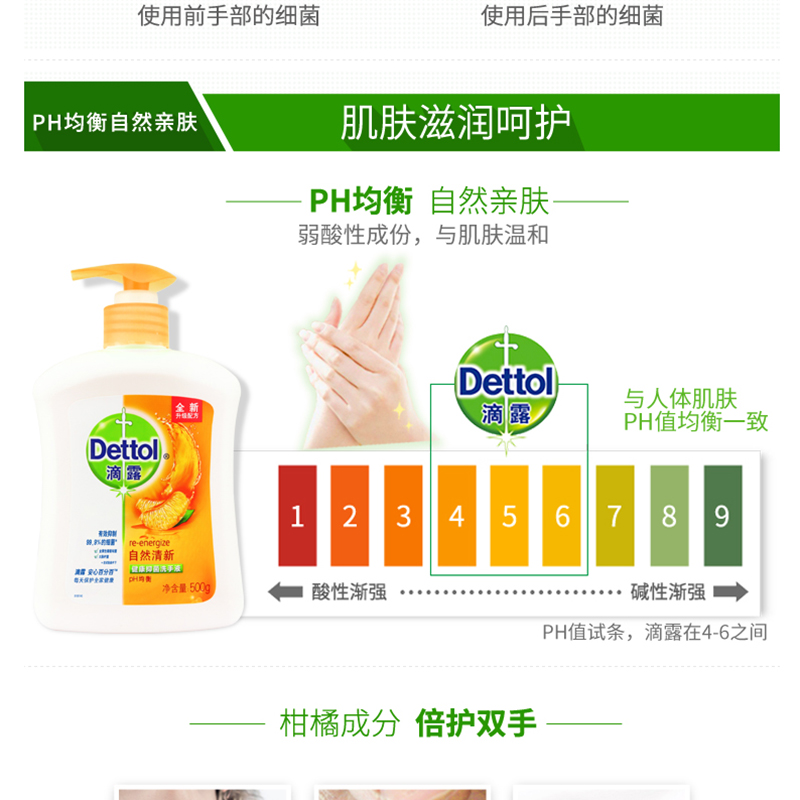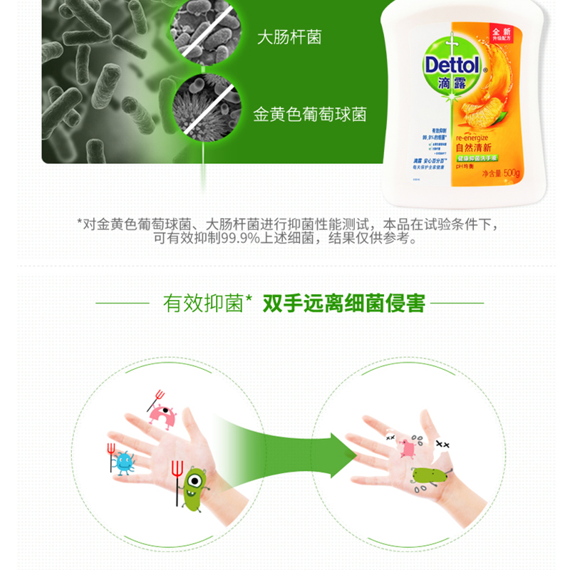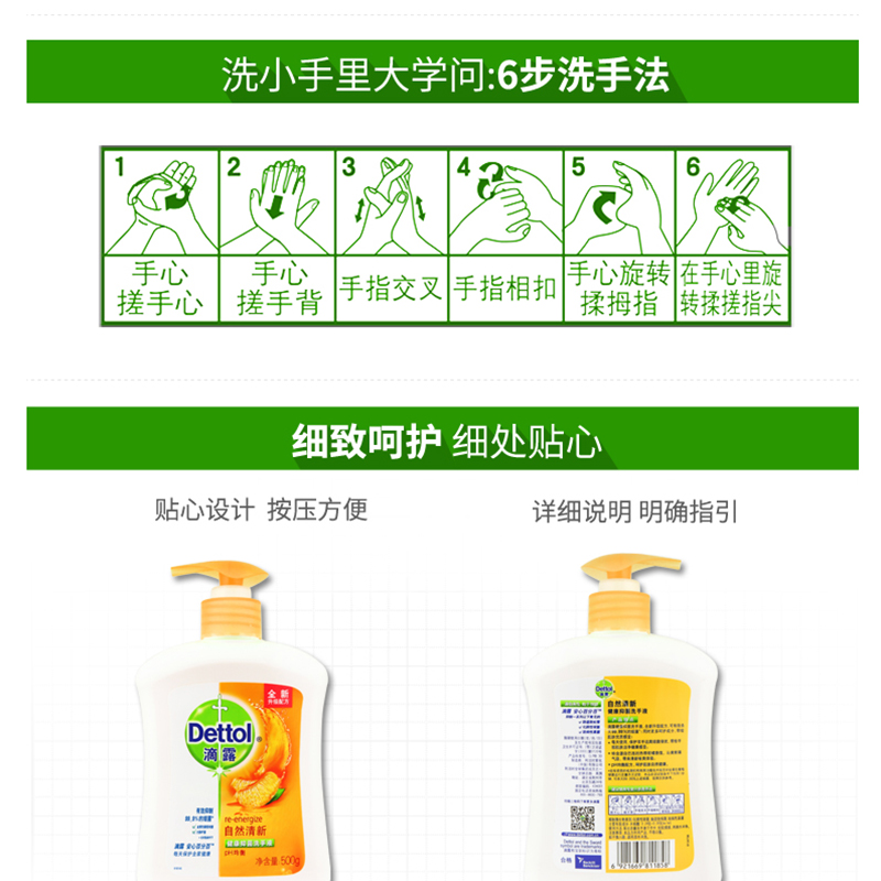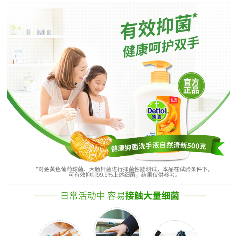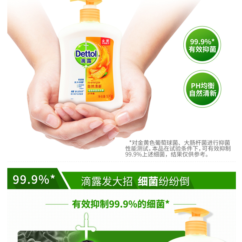滴露(Dettol) 健康抑菌洗手液自然清新 500g/瓶