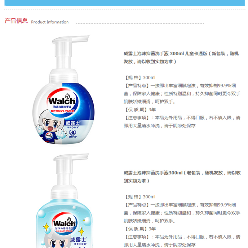 威露士(Walch) 泡沫洗手液 健康呵護(hù) 300ml