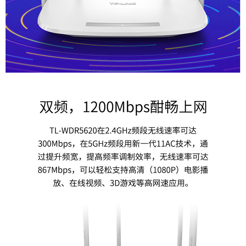 普聯(lián)(TP-LINK) TL-WDR5620 1200M 5G雙頻智能無線路由器 四天線智能wifi