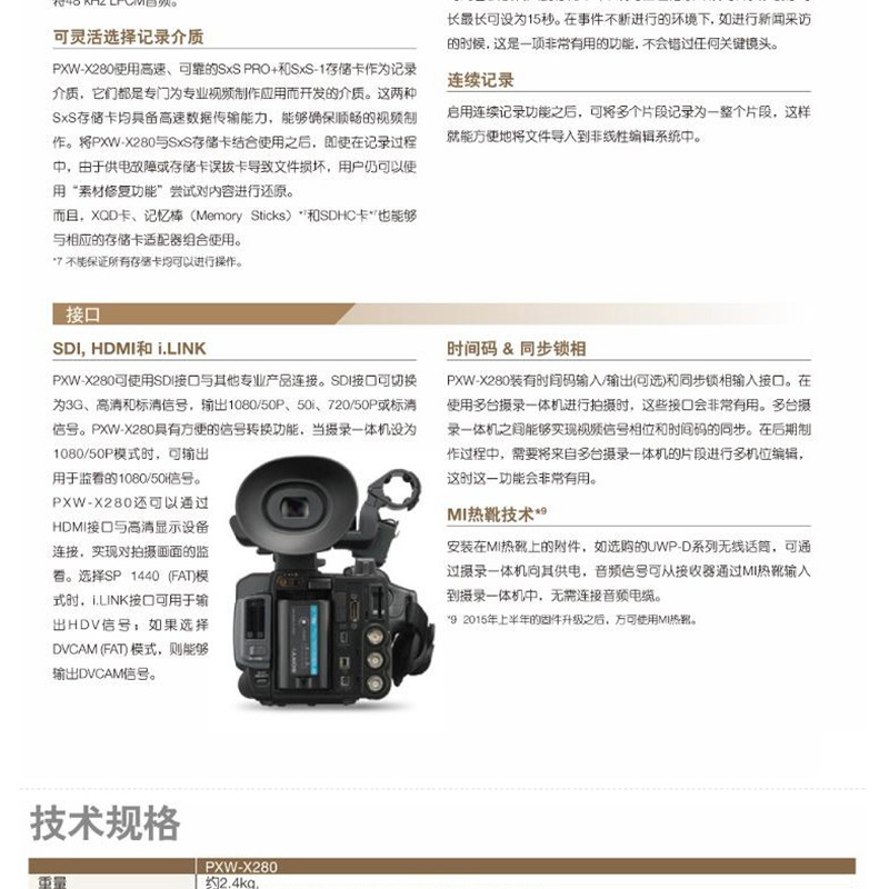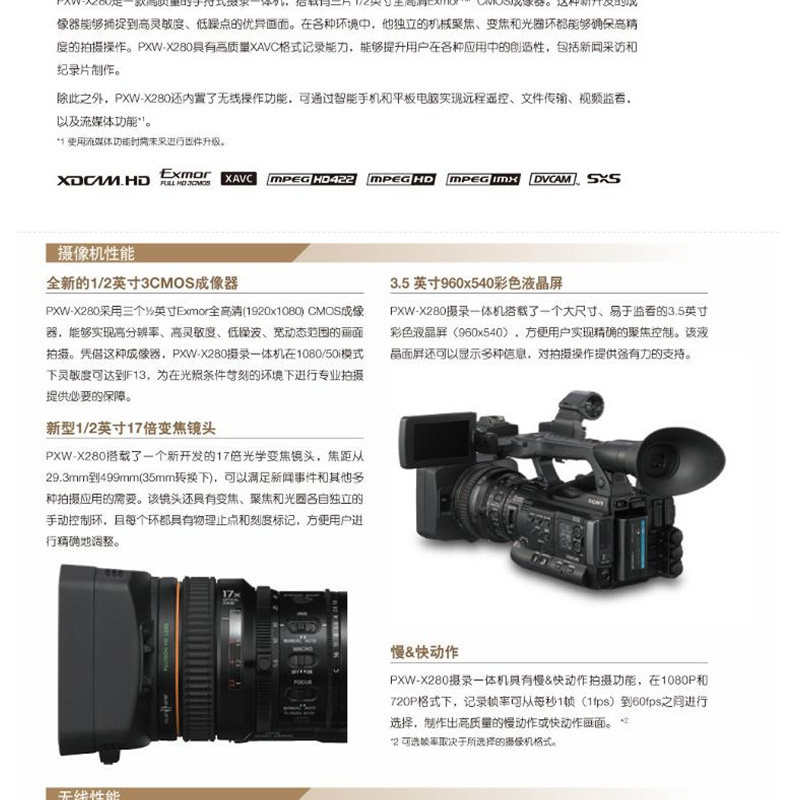 索尼(SONY) PXW-X280 手持式存儲卡攝錄一體機(jī) 3CMOS 新聞采訪/紀(jì)錄片制作/電視臺推薦型號