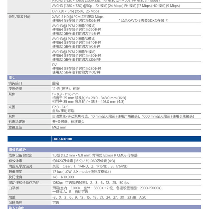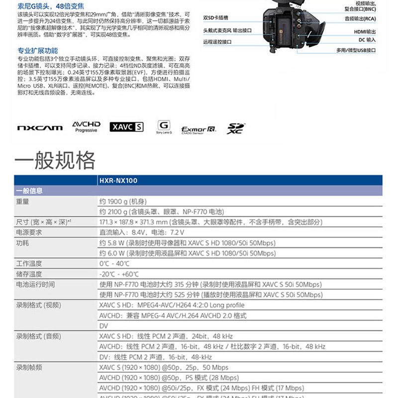 索尼(SONY) HXR-NX100 專業(yè)便攜式攝錄一體機(jī)