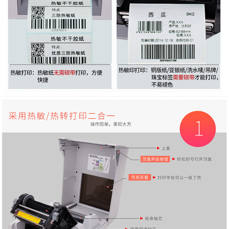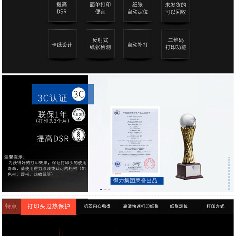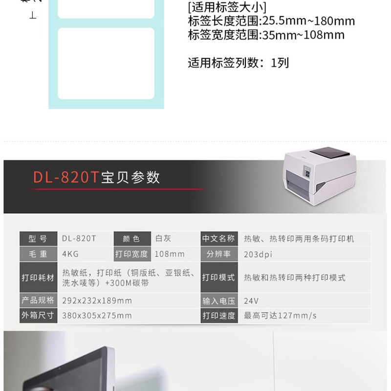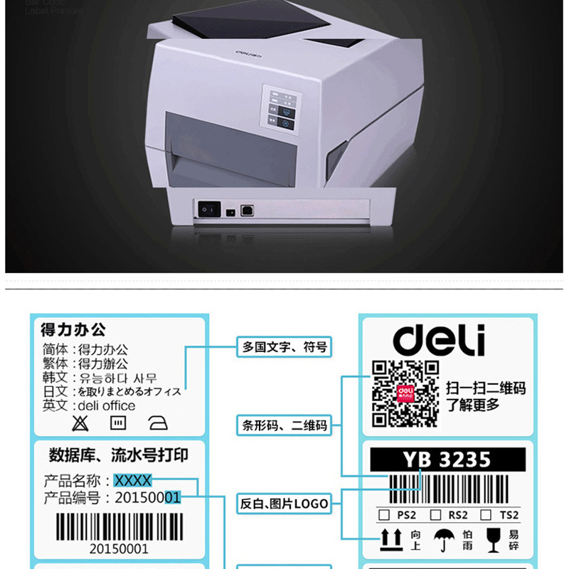 得力(deli) DL-820T 熱轉(zhuǎn)印標(biāo)簽打印機(jī) 熱敏小票條碼不干膠電子面單打印機(jī)