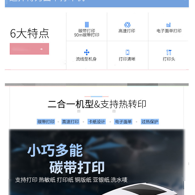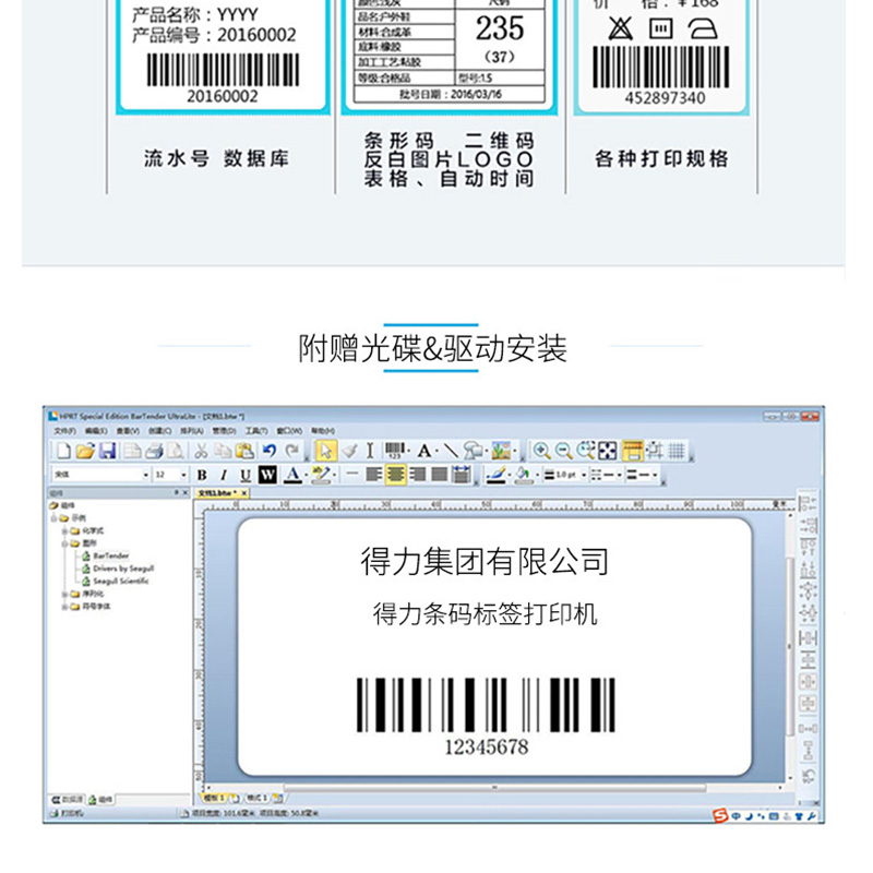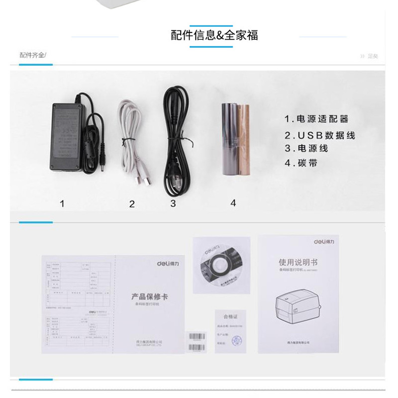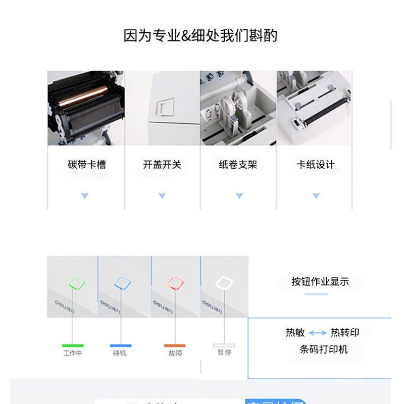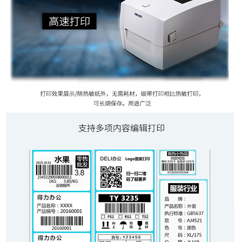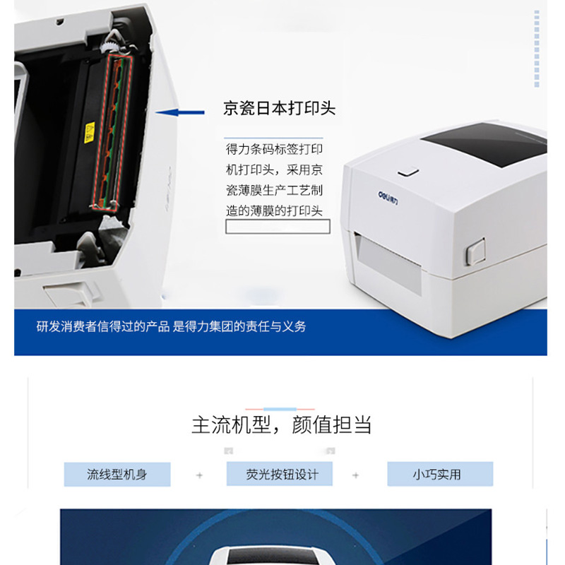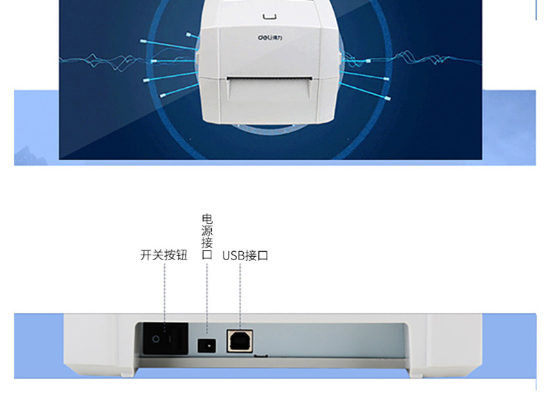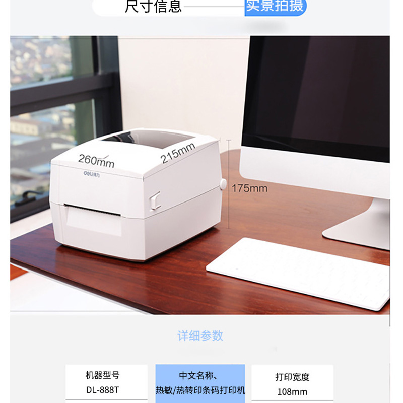 得力(deli) DL-888T 熱敏熱轉(zhuǎn)印標簽打印機 電子面單小票不干膠條碼打印機