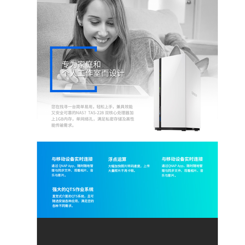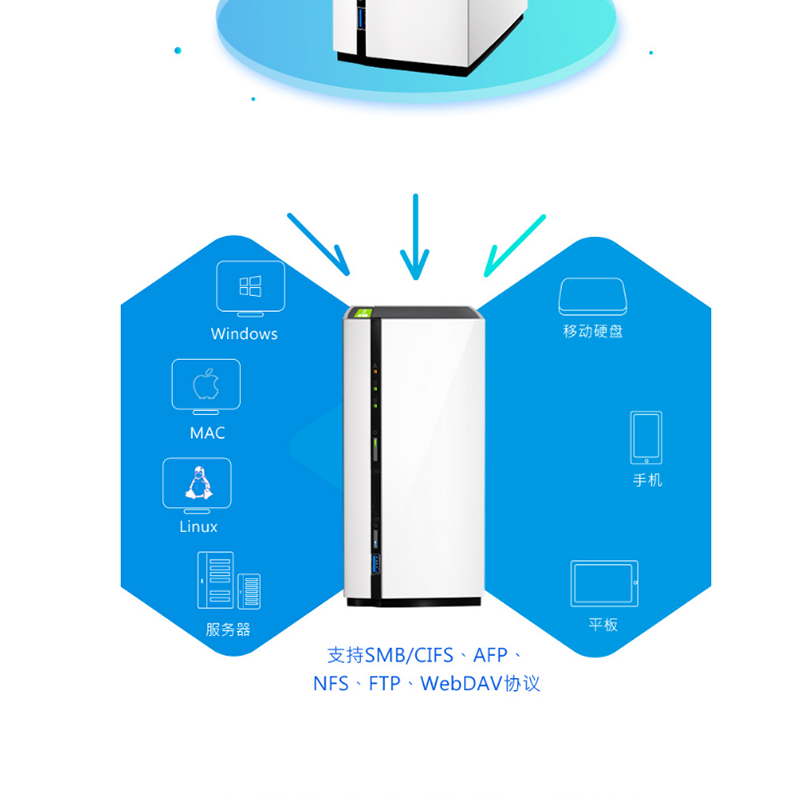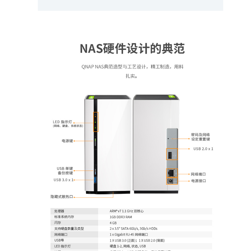 威聯(lián)通(QNAP) TS-228 1G內(nèi)存 NAS兩盤位網(wǎng)絡(luò)存儲(chǔ) 私有云