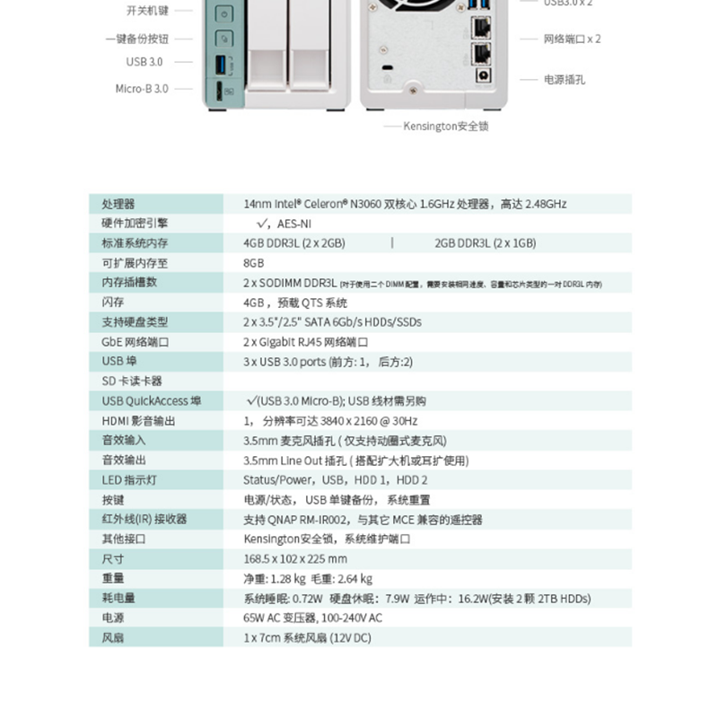 威聯(lián)通(QNAP) TS-251A -2G內(nèi)存 兩盤位網(wǎng)絡(luò)存儲器 雙核雙網(wǎng)卡 可USB直連 20T容量