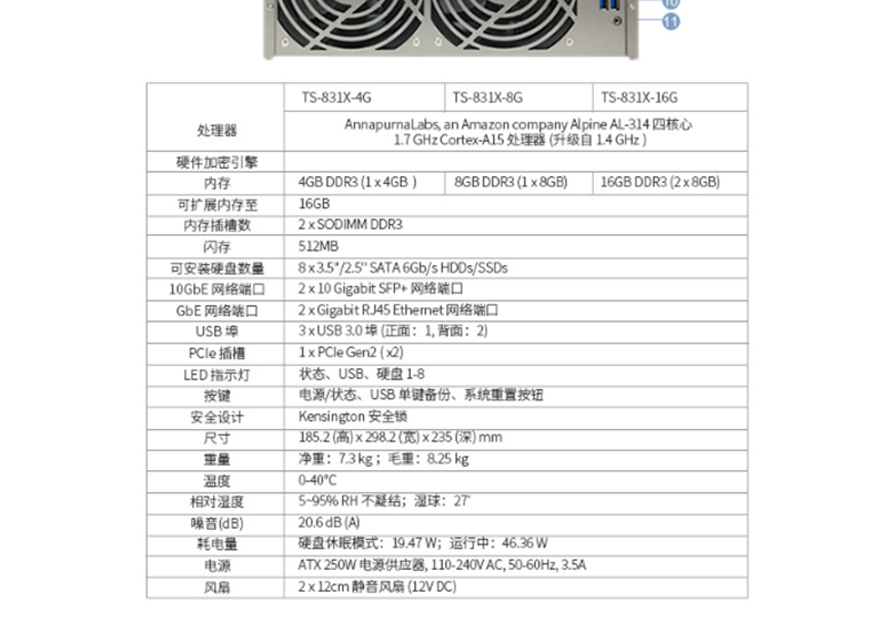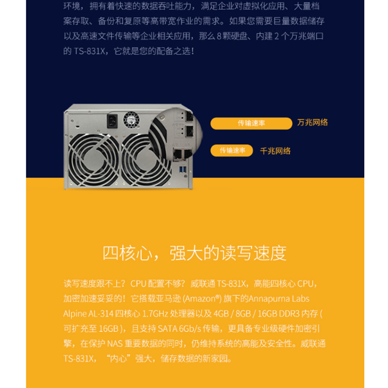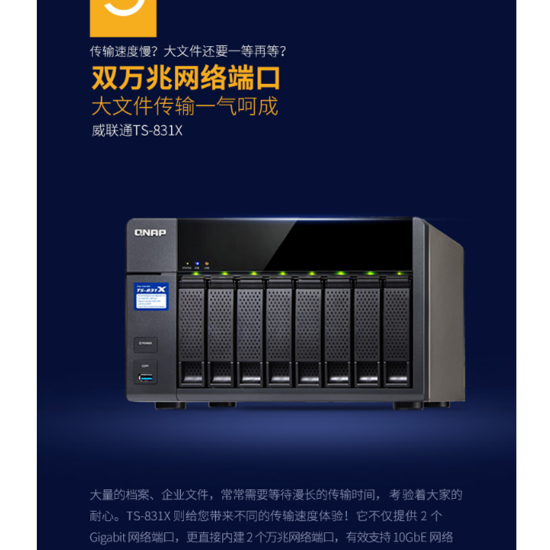 威聯(lián)通(QNAP) TS-831X-8G 高效能四核處理器,內(nèi)建雙10GbE SFP+ 網(wǎng)絡(luò)端口 八盤位NAS網(wǎng)絡(luò)存儲(chǔ)器(無內(nèi)置硬盤)