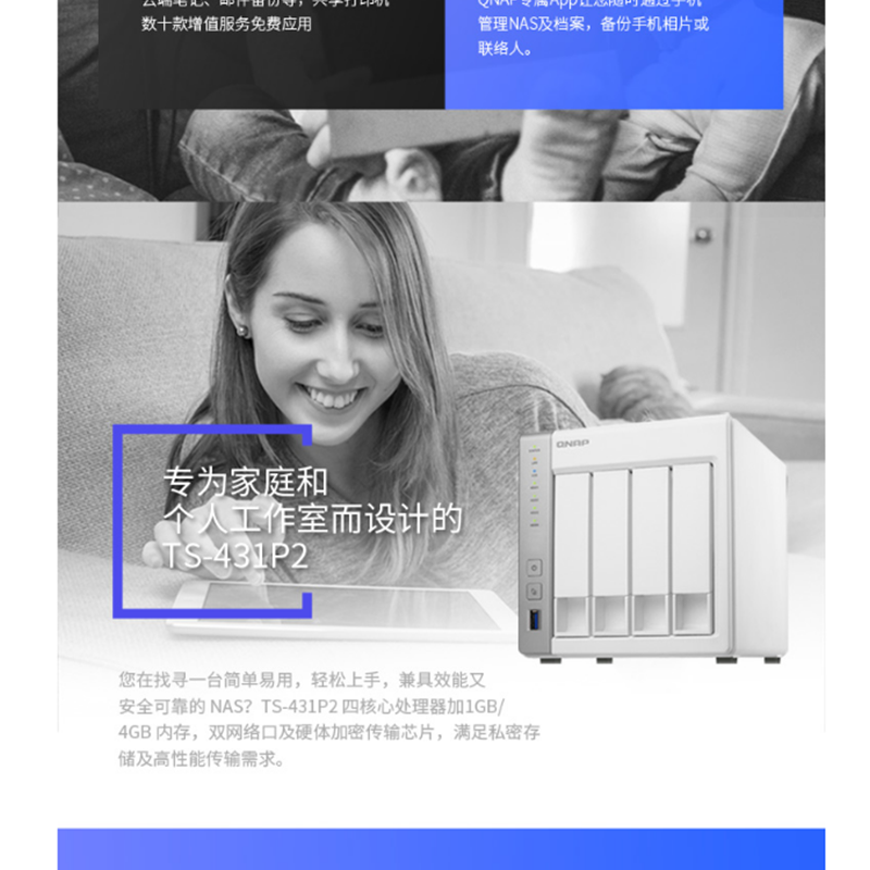 威聯(lián)通(QNAP) TS-431P2 4G內(nèi)存 四核心處理器 四盤位NAS網(wǎng)絡(luò)存儲(chǔ)器雙網(wǎng)絡(luò)端口