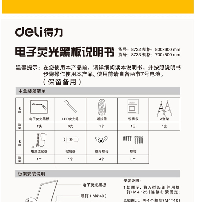 得力(deli) 8733 50*70cm帶架子電子熒光黑板/白板 LED燈手寫(xiě)廣告牌/熒光板