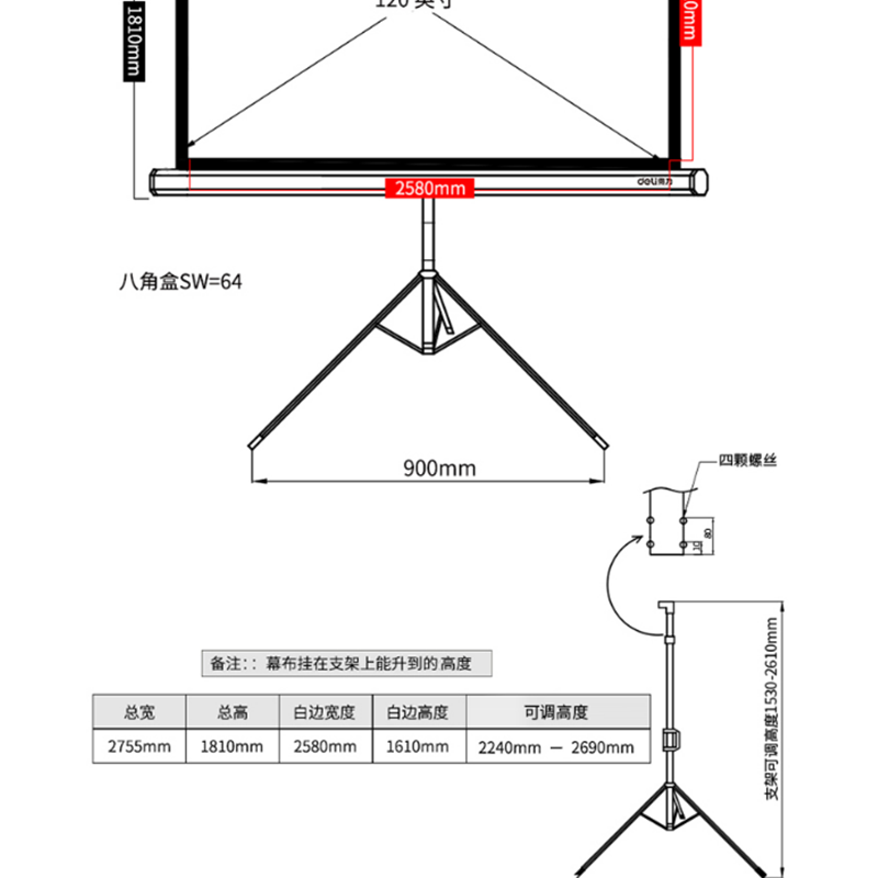 得力(deli) 50496 120英寸 16:10支架投影幕布家用投影儀幕布