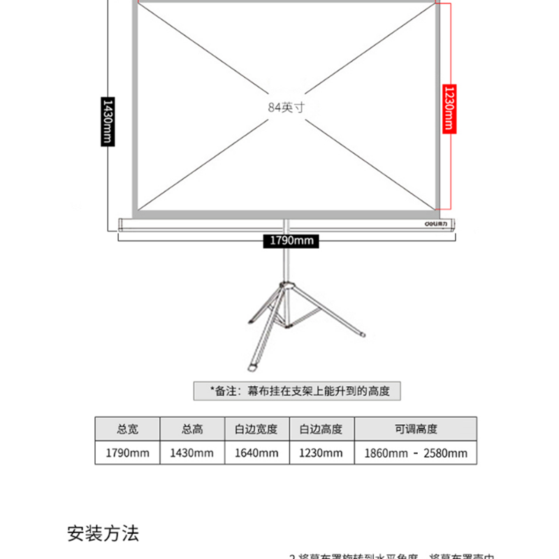 得力(deli) 50490 84英寸 4:3電動(dòng)調(diào)節(jié)投影幕布投影布 家用投影儀幕布