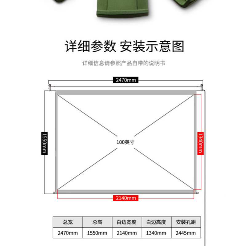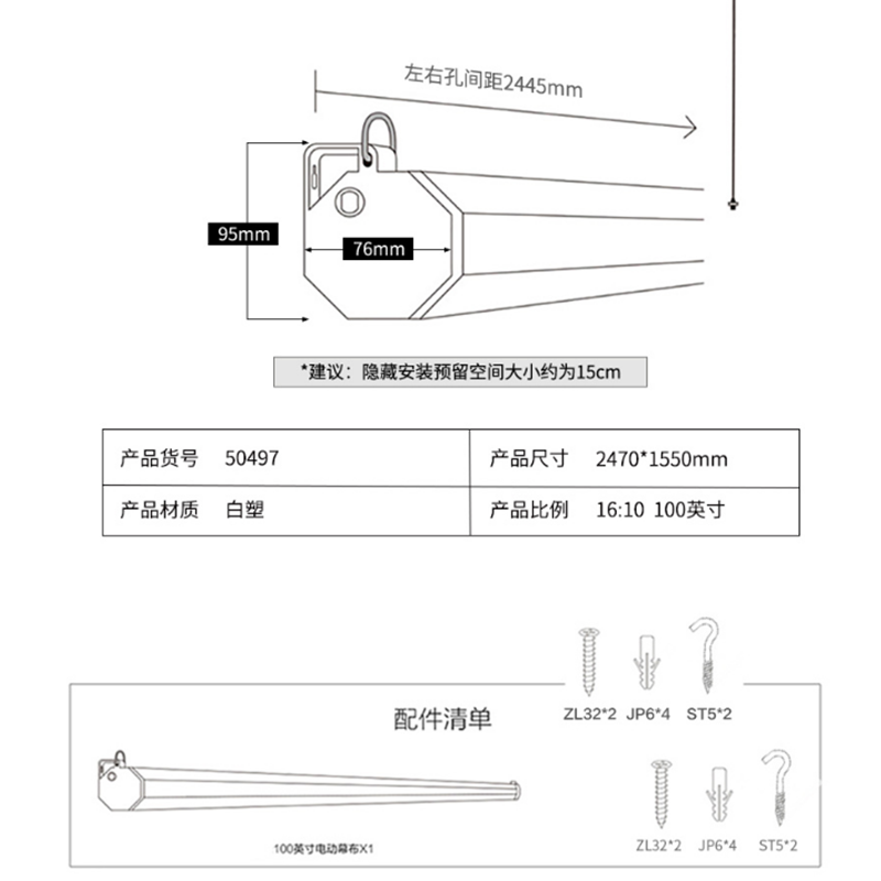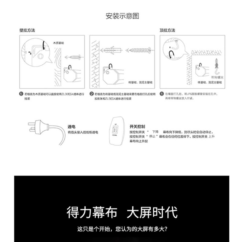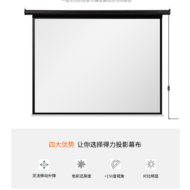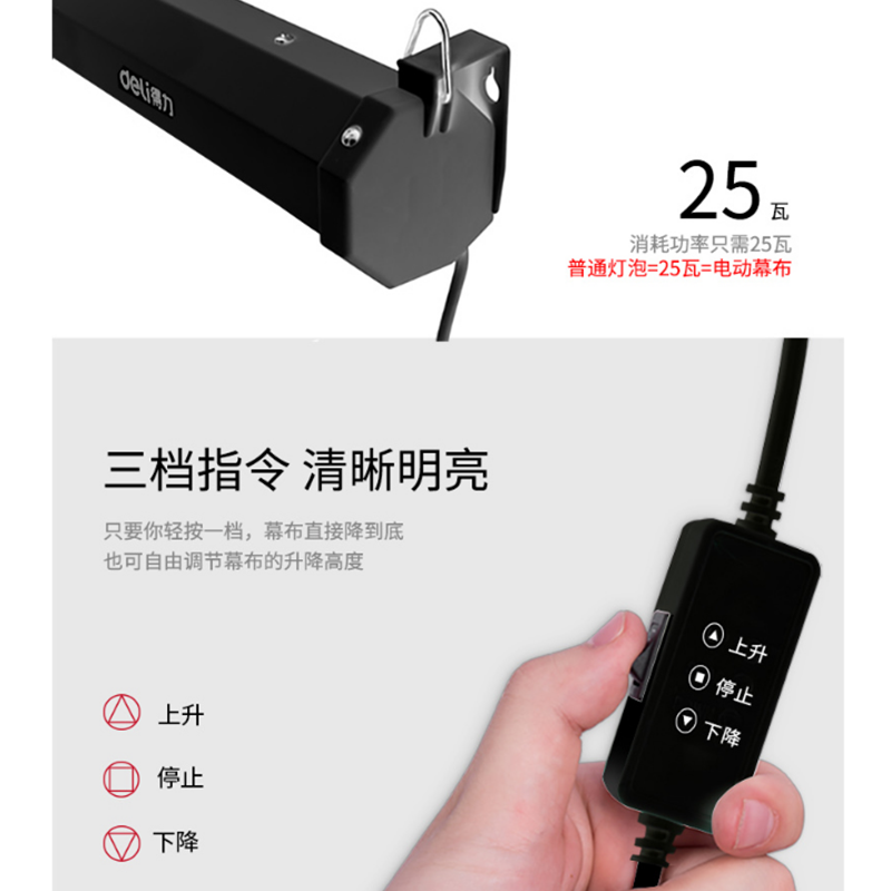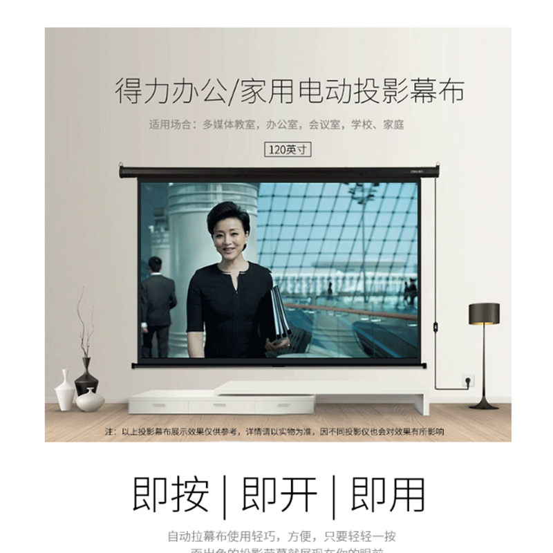 得力(deli) 50497 100英寸 16:10電動(dòng)調(diào)節(jié)投影幕布投影布 家用投影儀幕布