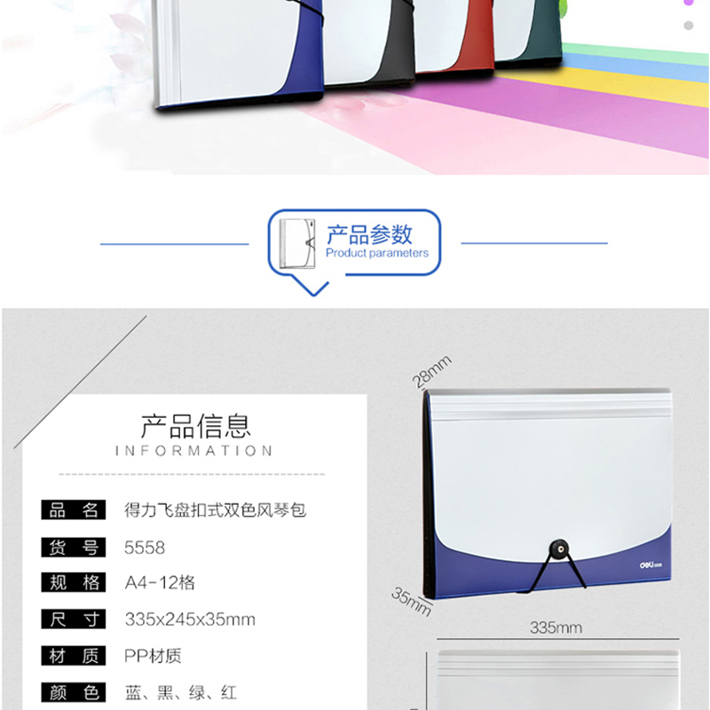 得力(deli) 5558 A4/12格飛盤扣式雙色風(fēng)琴包/資料包/文件包 顏色隨機(jī)