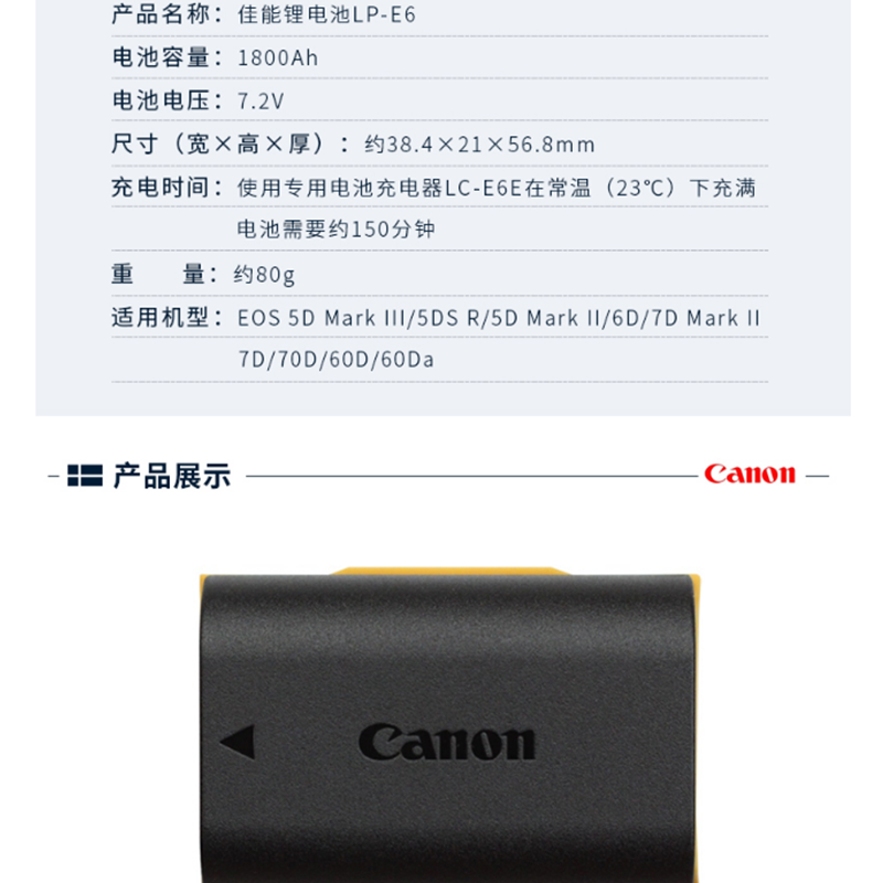 佳能(Canon) LP-E6電池 LC-E6E充電器