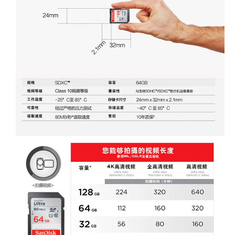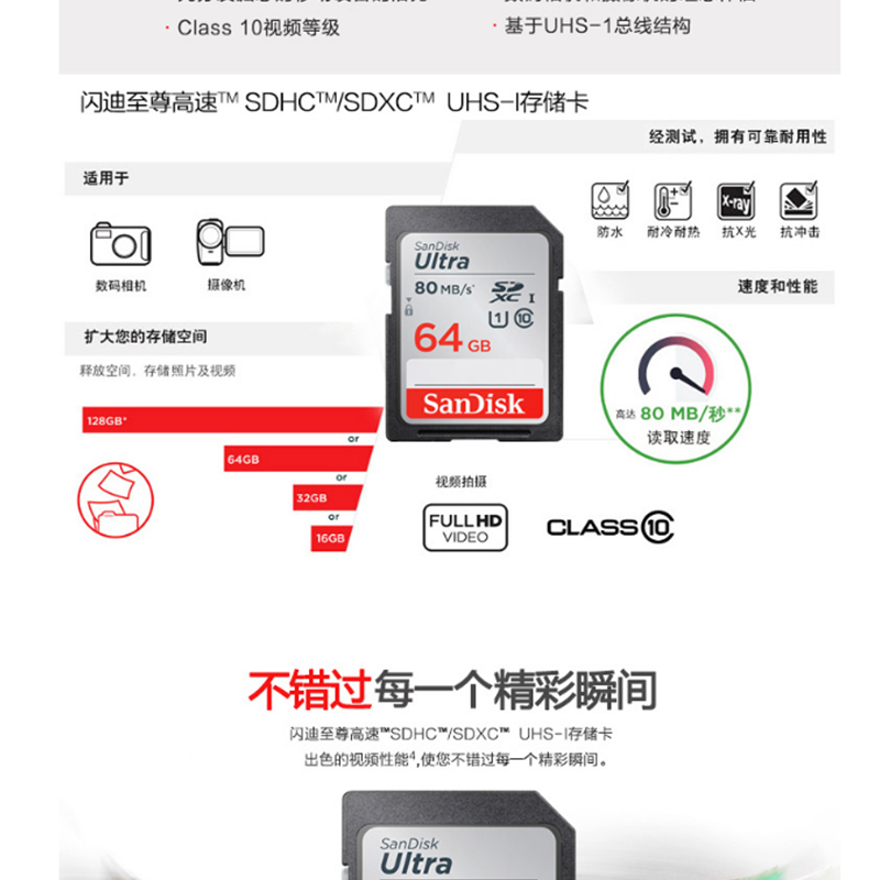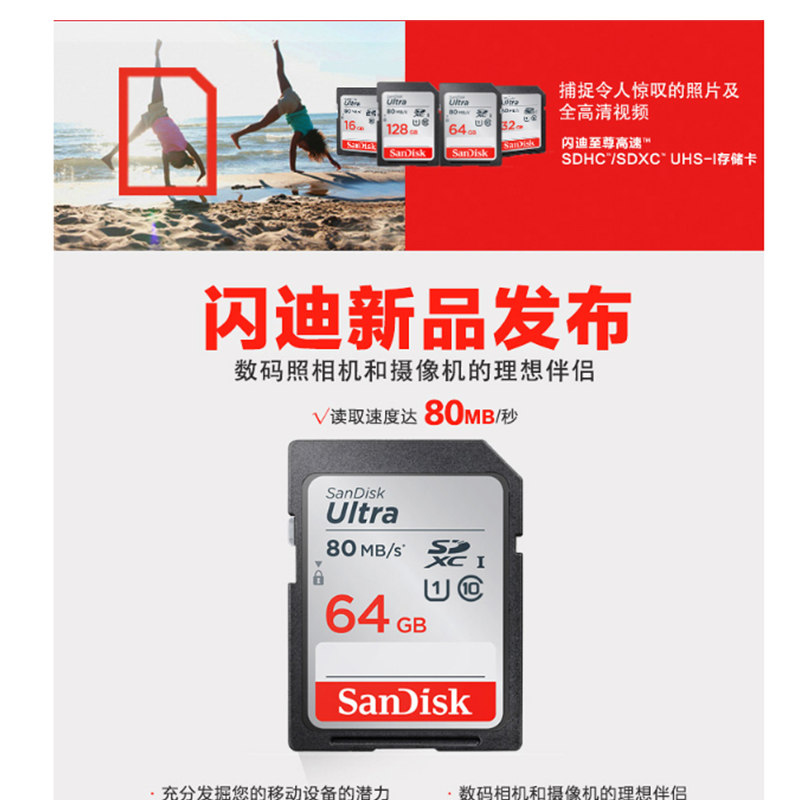 閃迪(SanDisk) 64GB 讀速80MB/s 至尊高速SDXC UHS-I存儲卡 Class10 SD卡