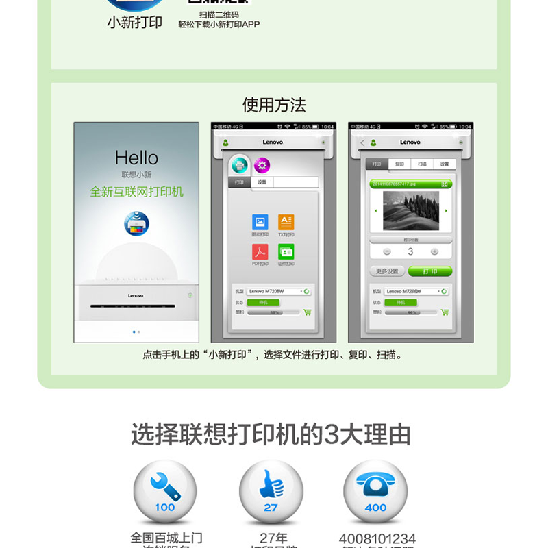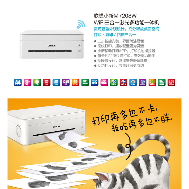 聯(lián)想(Lenovo) 小新M7208W 黑白激光無線WiFi三合一多功能一體機(jī)