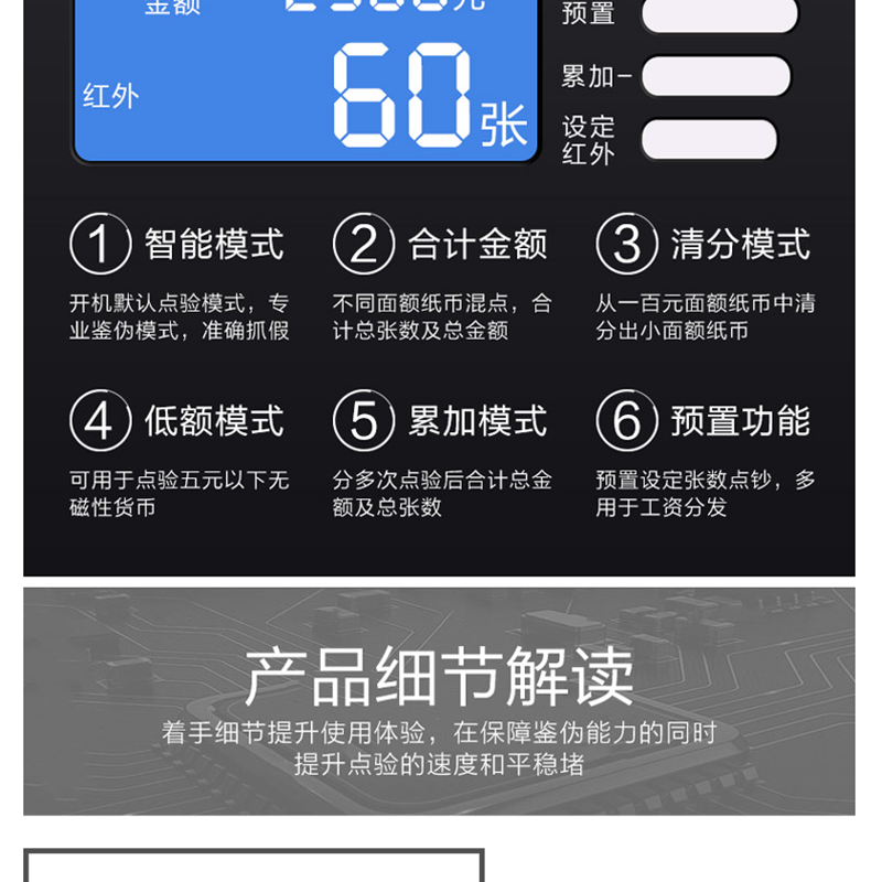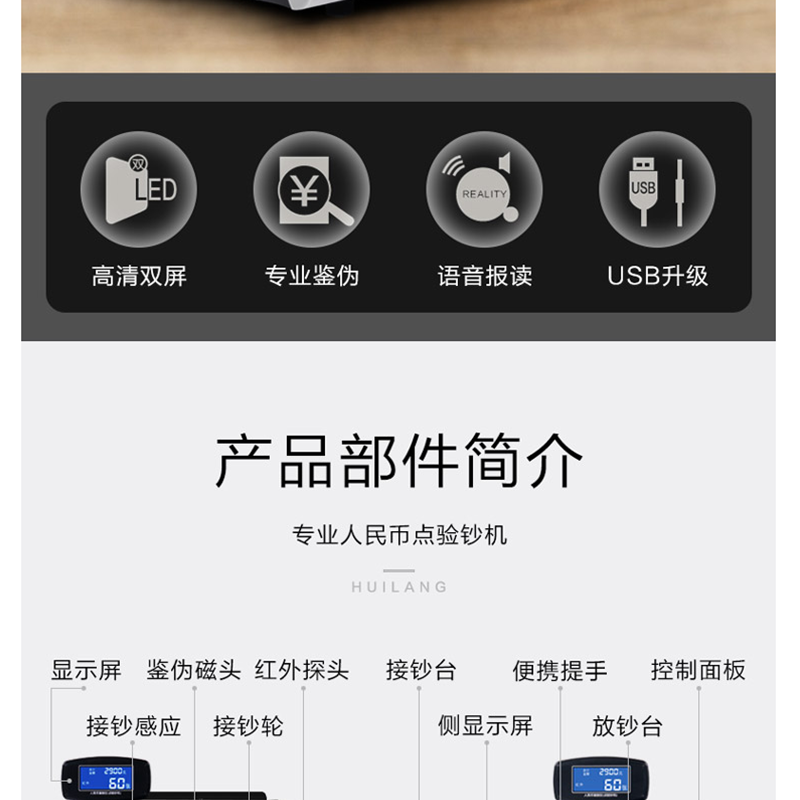 惠朗(wilion) JBYD-828(B) 語音報警點鈔機 驗鈔機 USB升級