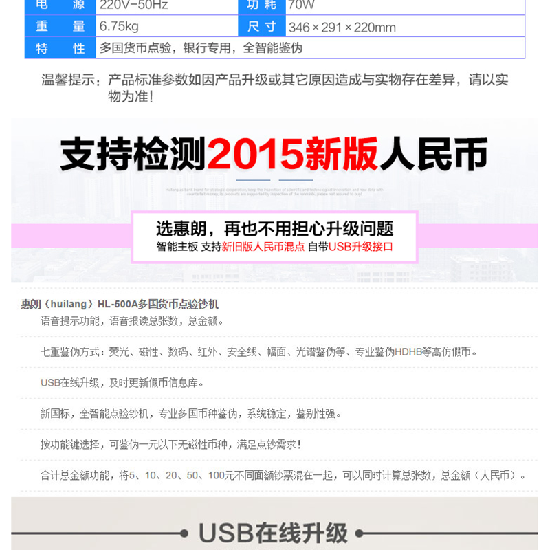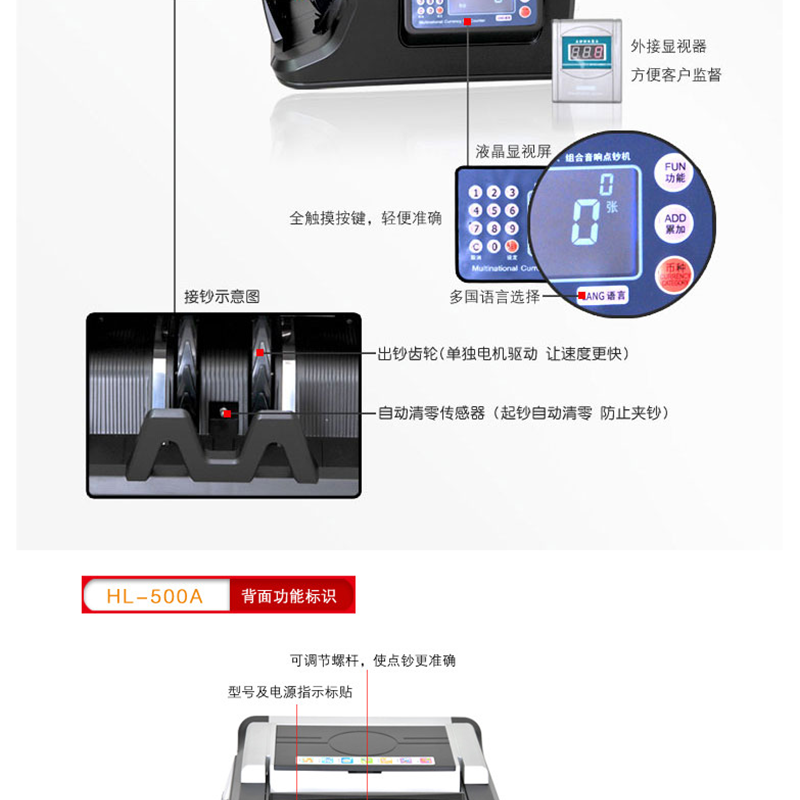 惠朗(wilion) HL-500A 全智能語音報(bào)警點(diǎn)鈔機(jī)/驗(yàn)鈔機(jī) 支持多國(guó)貨幣