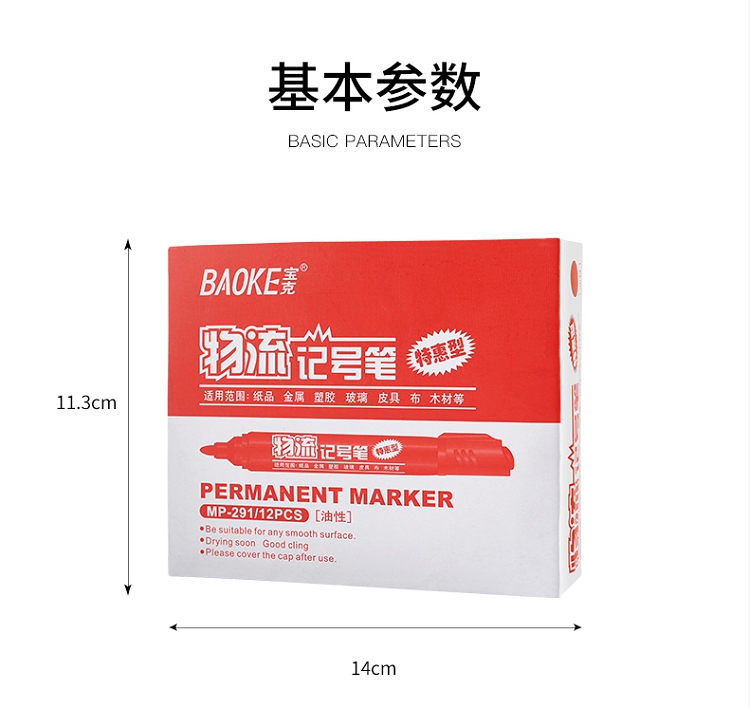 寶克(BAOKE) MP-291 油性快干物流記號(hào)筆 黑色 12支/盒