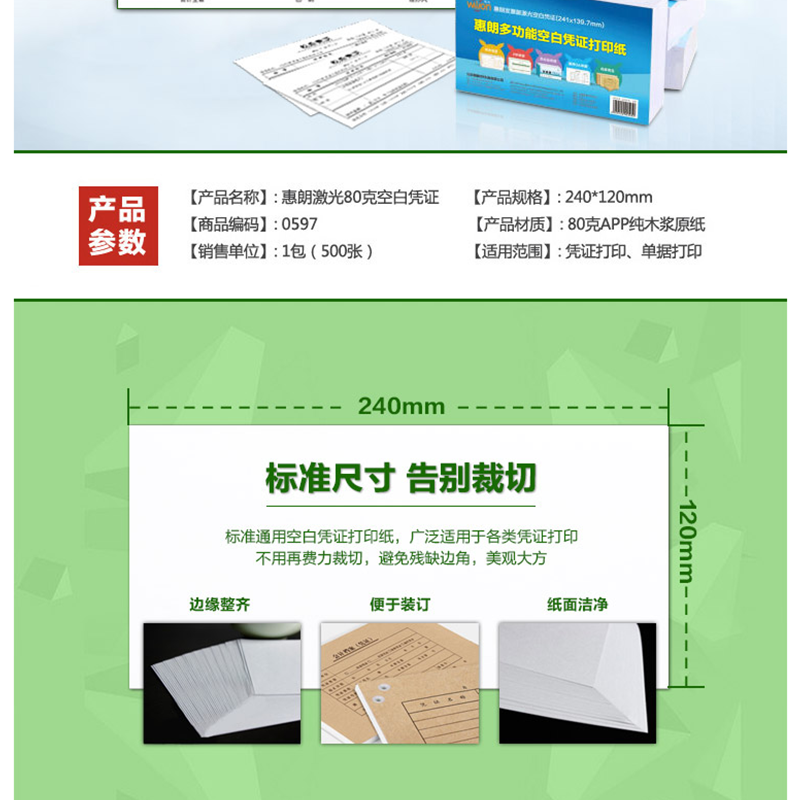 惠朗(wilion) 0597 激光80克空白憑證打印紙120*240mm 500張/包