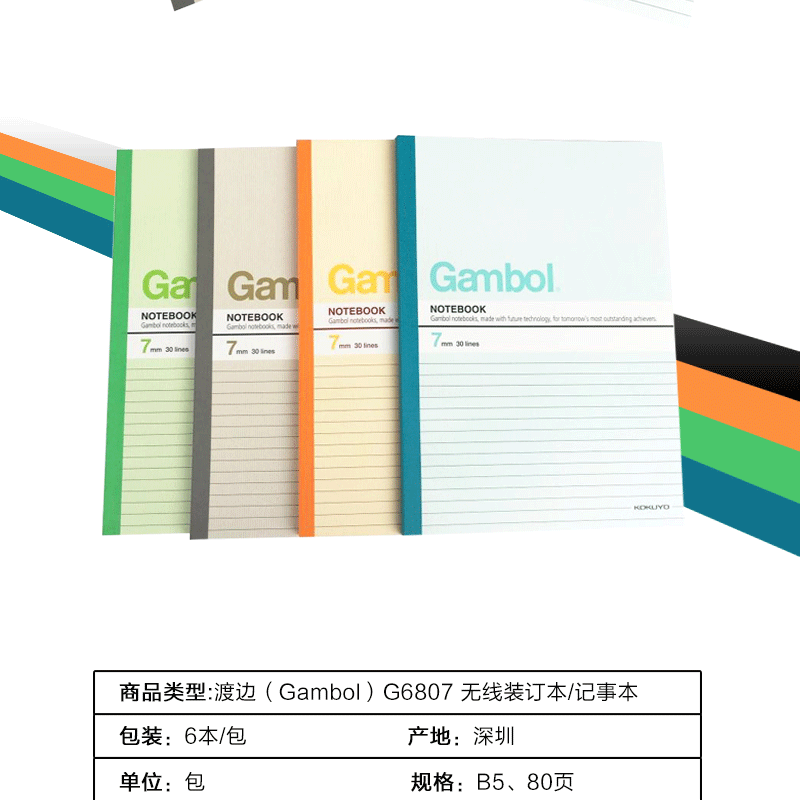 渡邊(Gambol) G6807 無(wú)線裝訂本/記事本 B5/80頁(yè) 6本裝