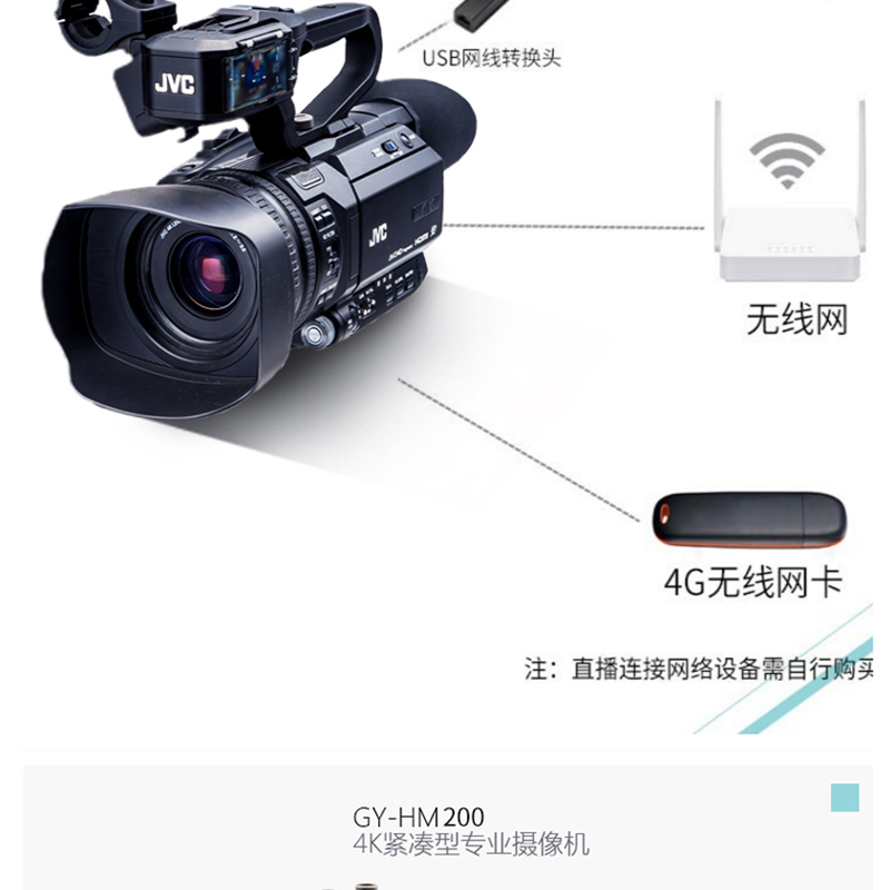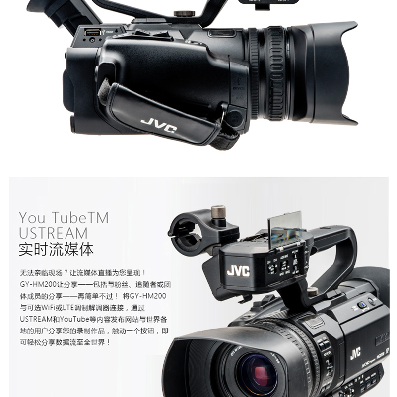 JVC(杰偉世) GY-HM200EC 4K手持專業(yè)攝像機 內置編碼器/4K/sdi輸出