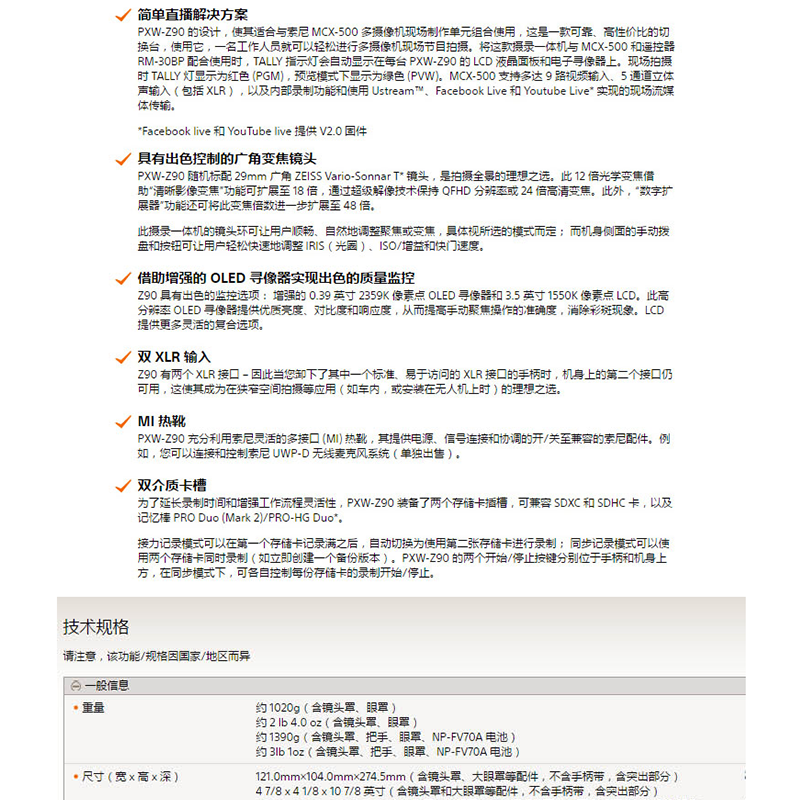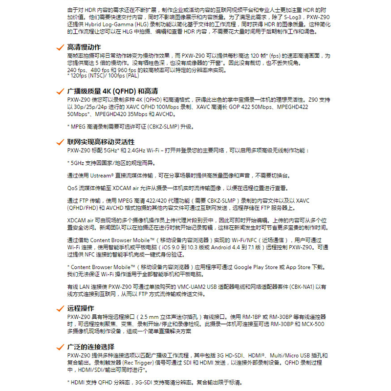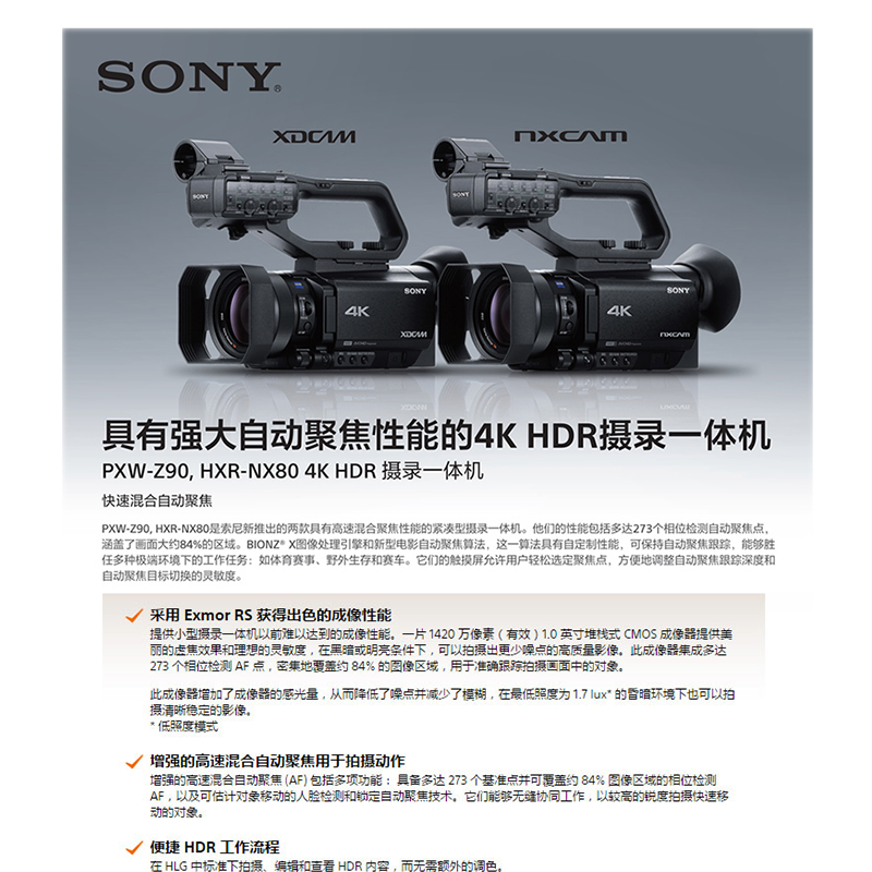 索尼(SONY) PXW-Z90 手持式4K攝錄一體機(小巧便攜 帶3G-SDI 12倍光學(xué))