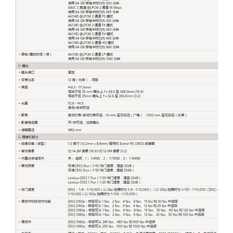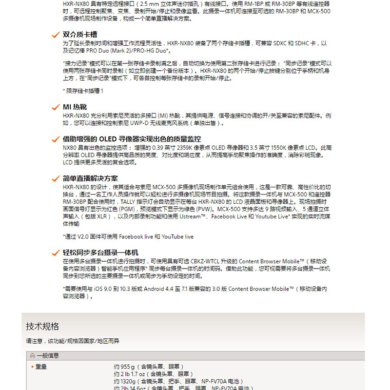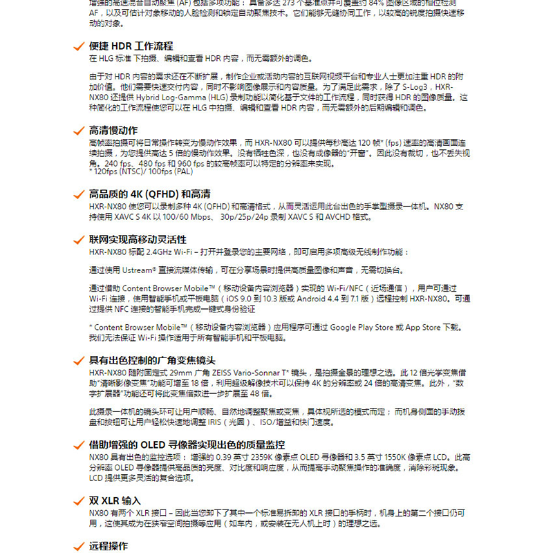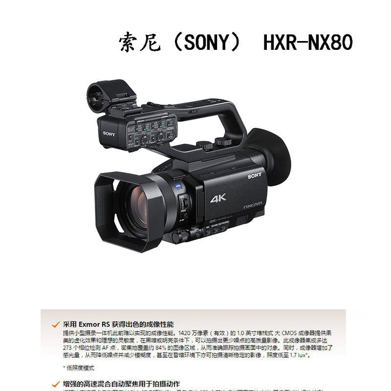 索尼(SONY) HXR-NX80 手持式4K攝錄一體機(jī) 小巧便攜 12倍變焦