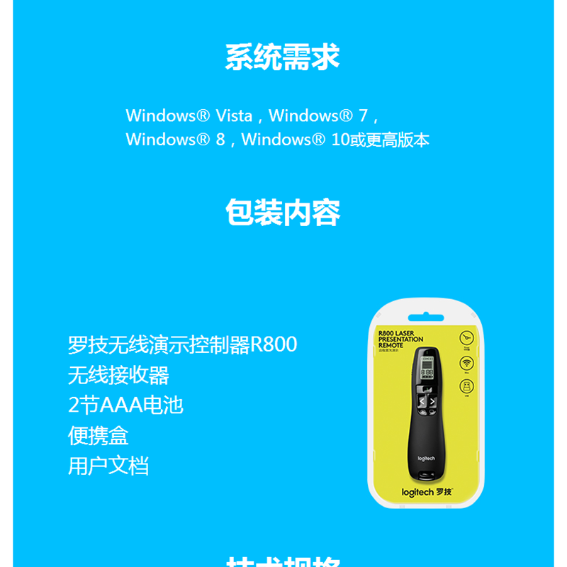 羅技(Logitech) R800 無線演示器 PPT翻頁筆 演示筆(激光筆)