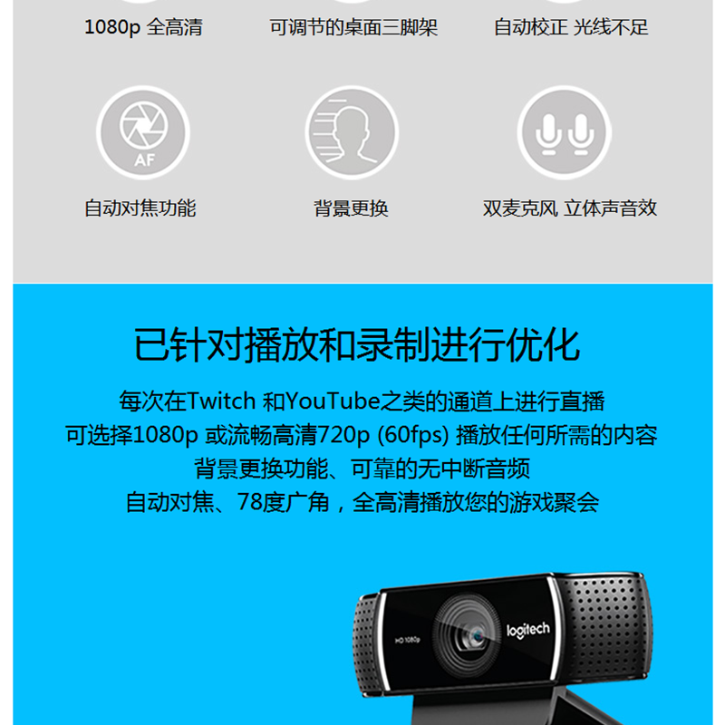 羅技(Logitech) C922 高清攝像頭
