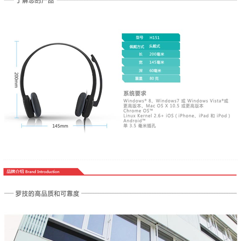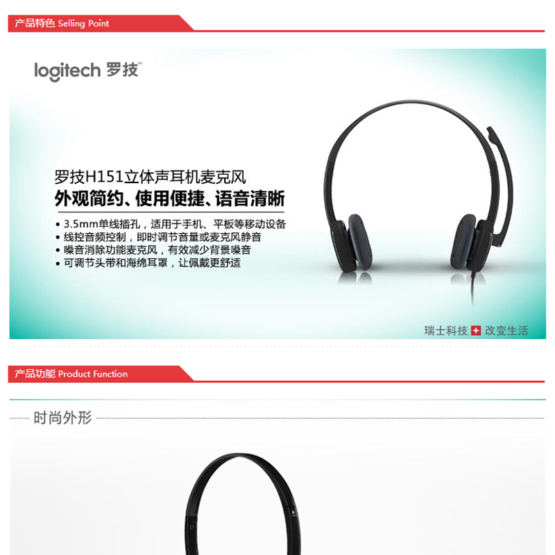 羅技(Logitech) H151 立體聲耳機(jī)麥克風(fēng) 黑色