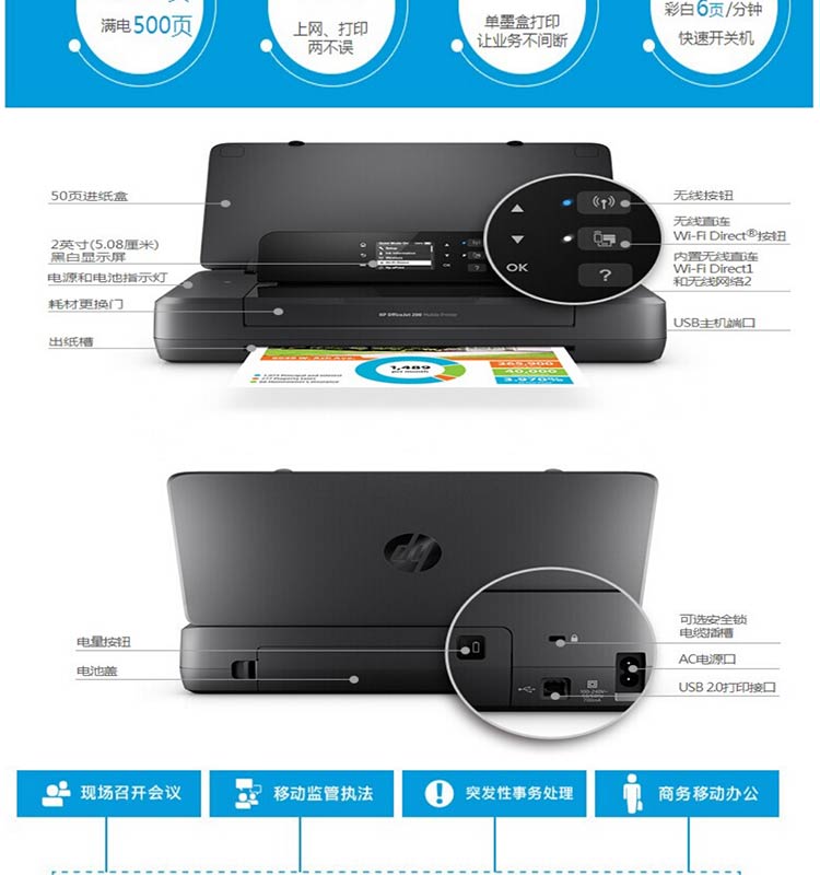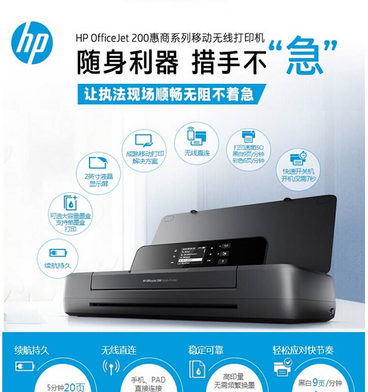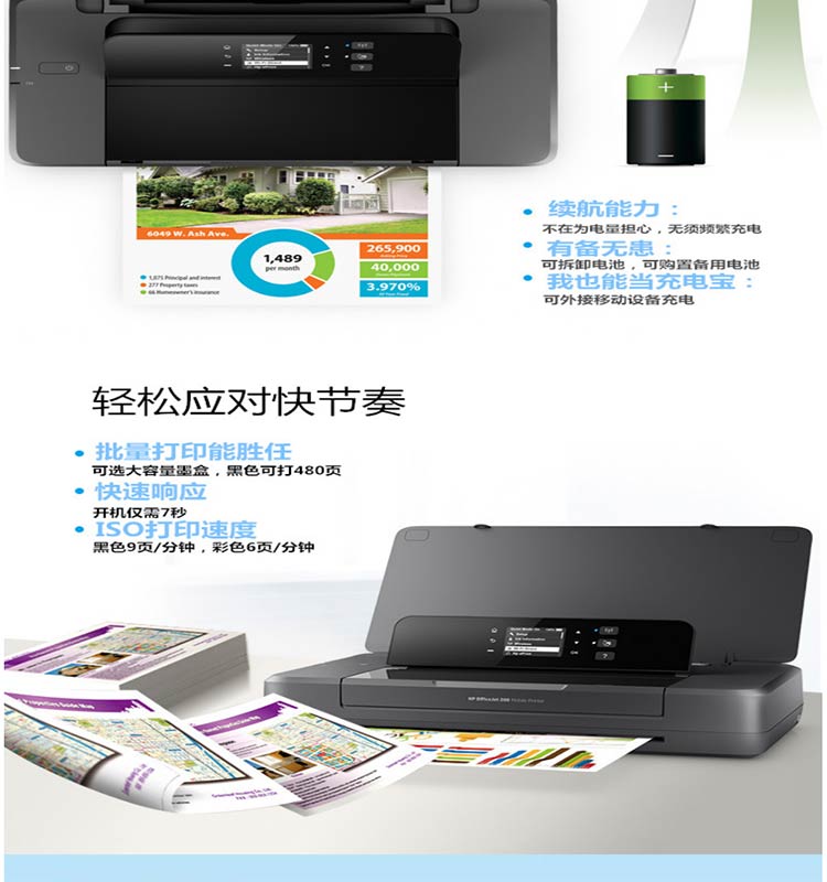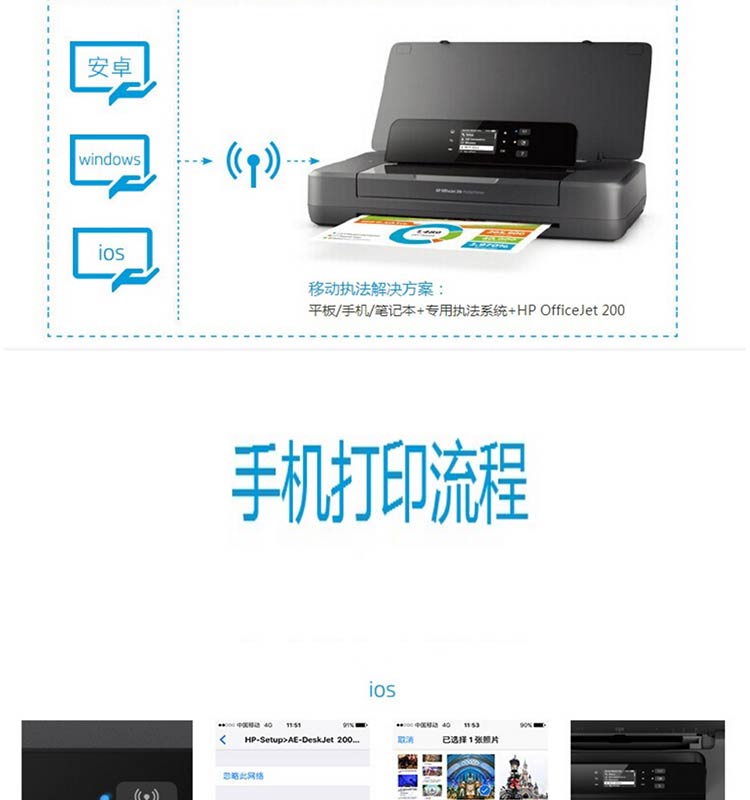 惠普(HP) OfficeJet 200 移動(dòng)噴墨打印機(jī) 無(wú)線打印