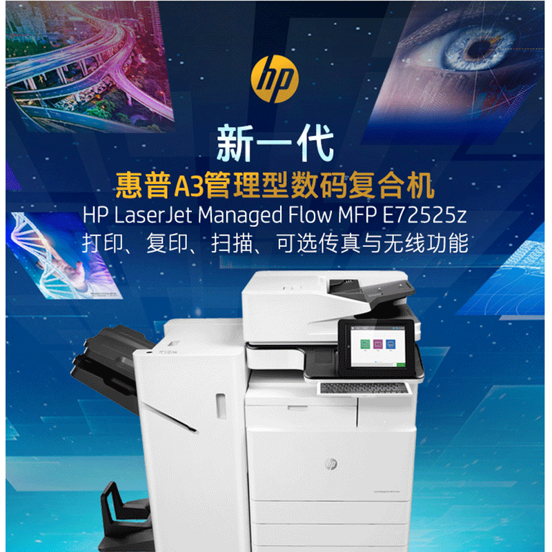 惠普(HP) LaserJet Managed Flow MFP E72525z A3幅面管理型數(shù)碼 黑白激光多功能一體機(jī)(打印/復(fù)印/掃描)