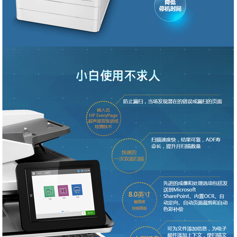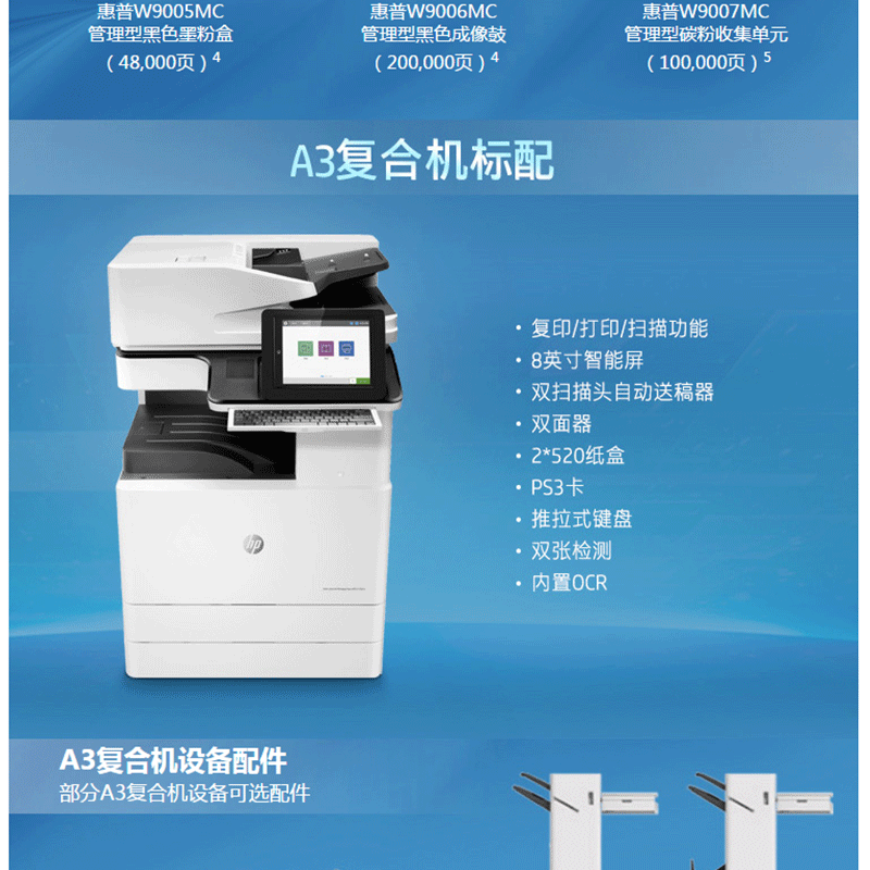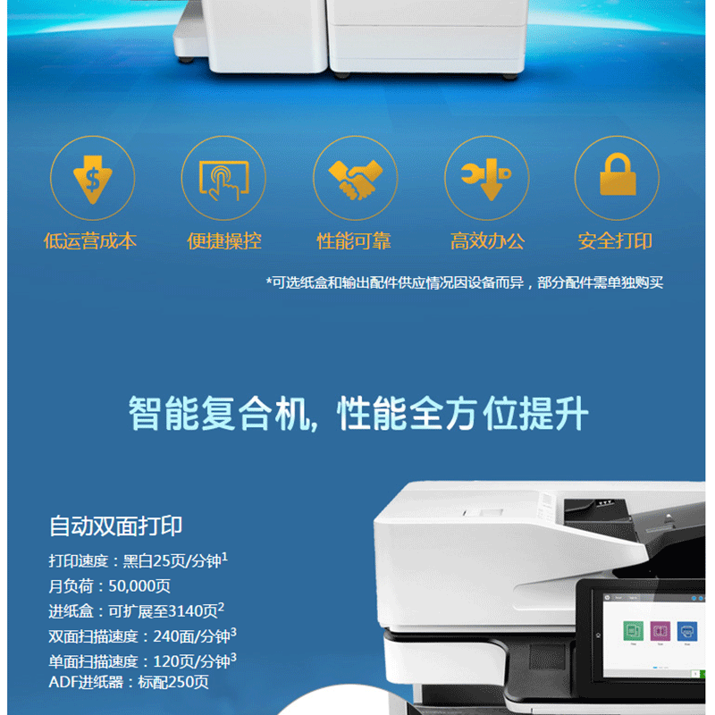 惠普新品!超低運(yùn)營成本!打印速度:25頁/分鐘,A3幅面,ADF容量:250頁。 ?