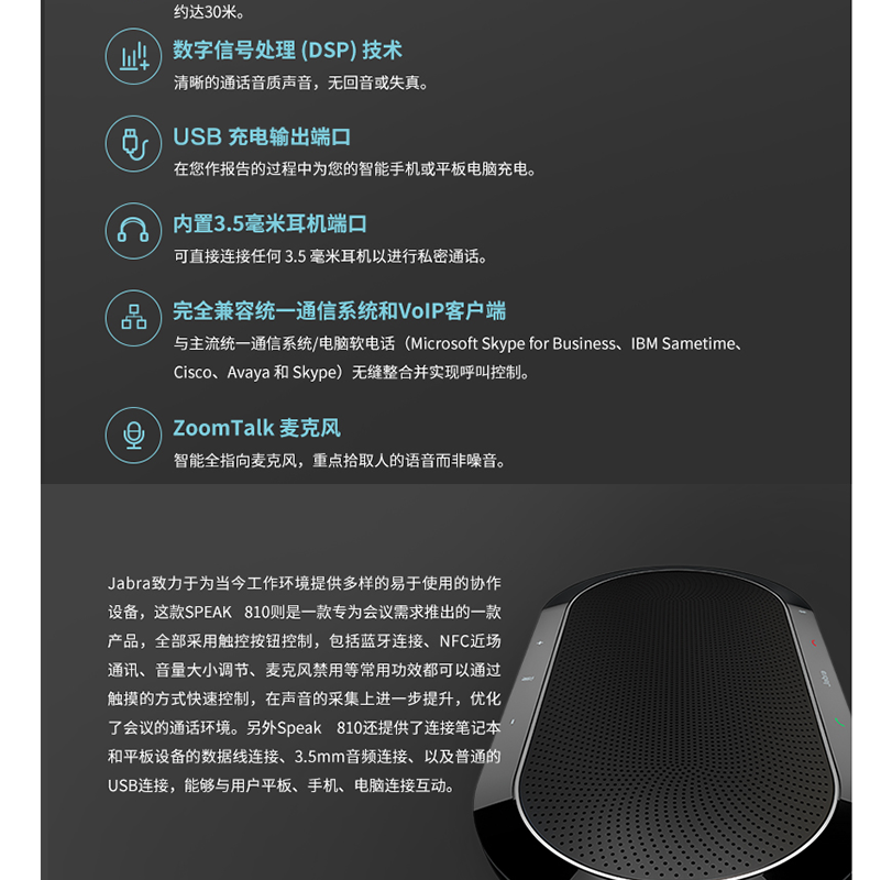 捷波朗(Jabra) SPEAK 810 藍牙/會議音頻/視頻會議麥克風/揚聲器