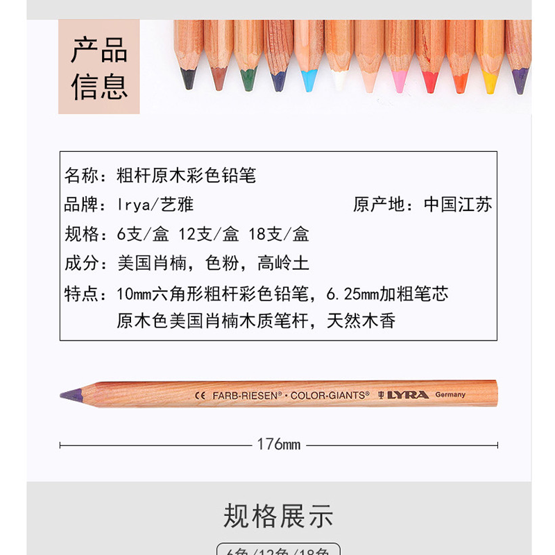 藝雅(LYRA) L3931180 兒童學生繪畫涂色 原木色彩色鉛筆 18色